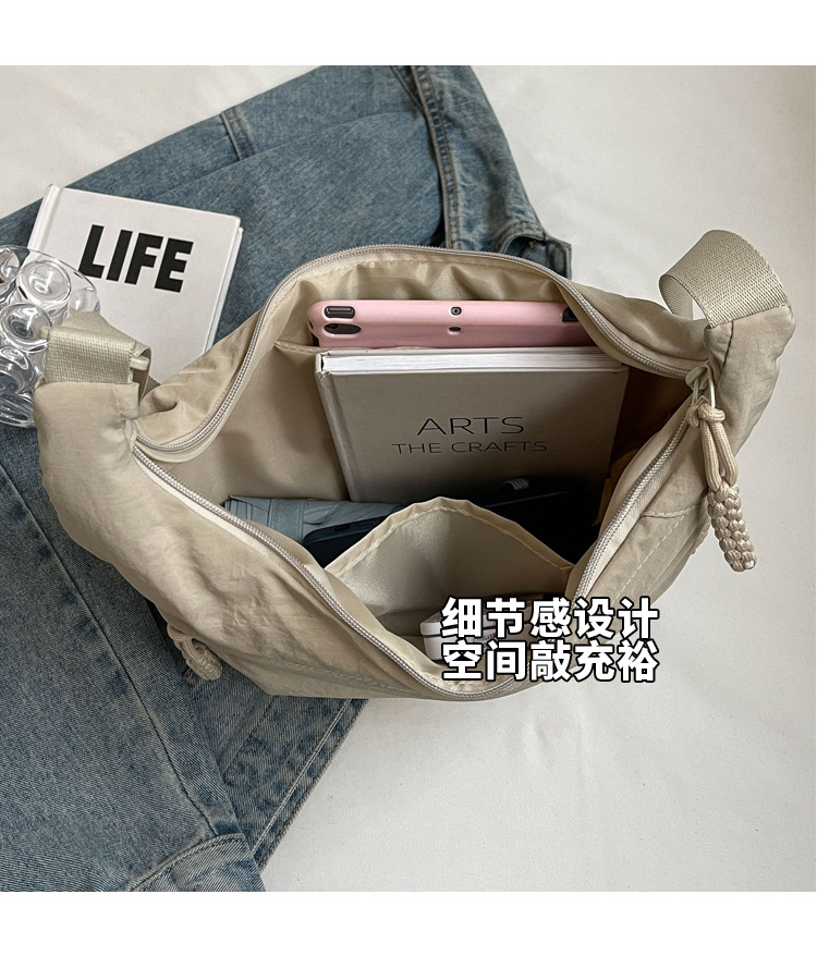 跨境新款2025百搭单肩包旅行斜挎包水洗皱尼龙复古休闲轻便饺子包