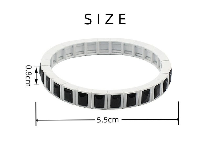 tiktok跨境热销摩卡水晶弹力袖口搪瓷手镯情侣橡筋小号方框