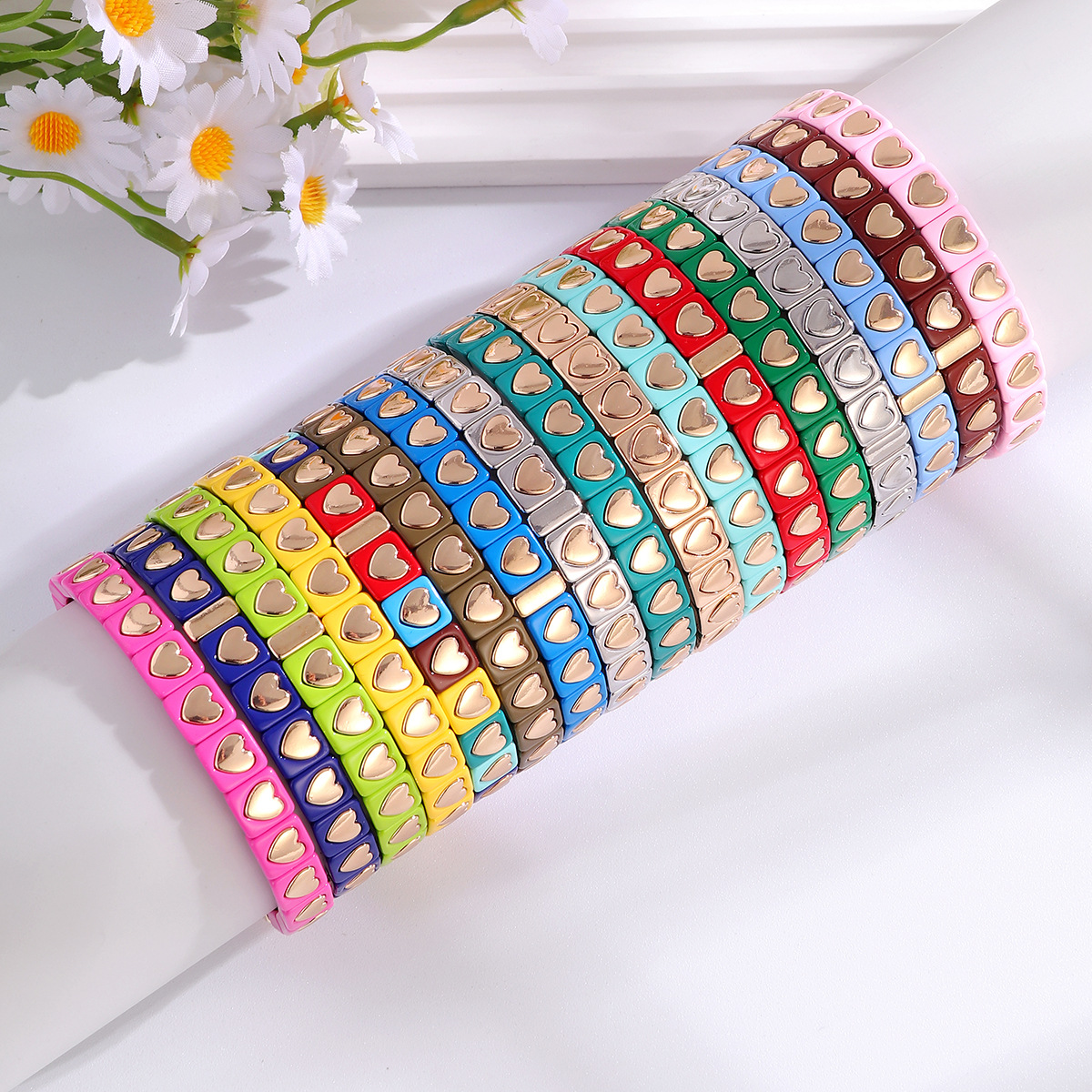 Wish熱売エナメルブレスレット幾何学長方形虹幸運ブレスレットビーズ多層重ね可能カップルブレスレット