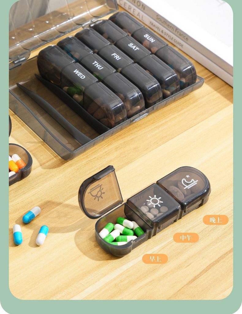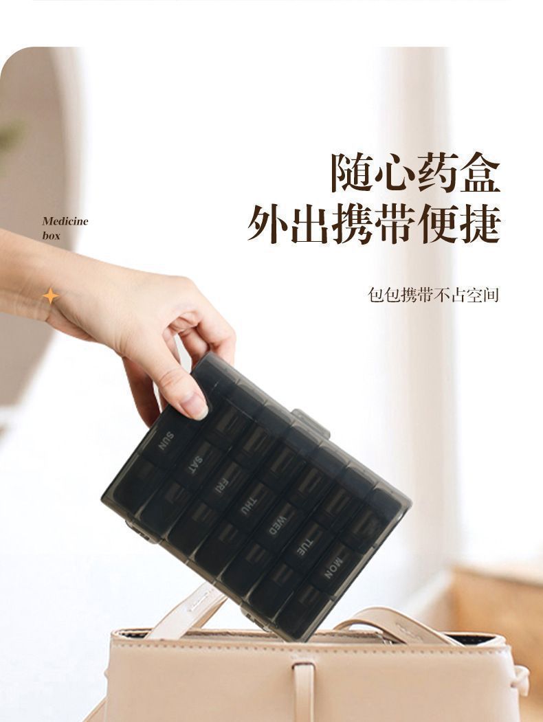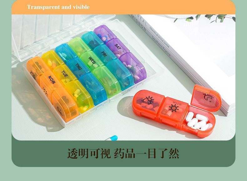 跨境热卖款旅行药盒便携分格防吃错一周七天避光21格老人分药盒