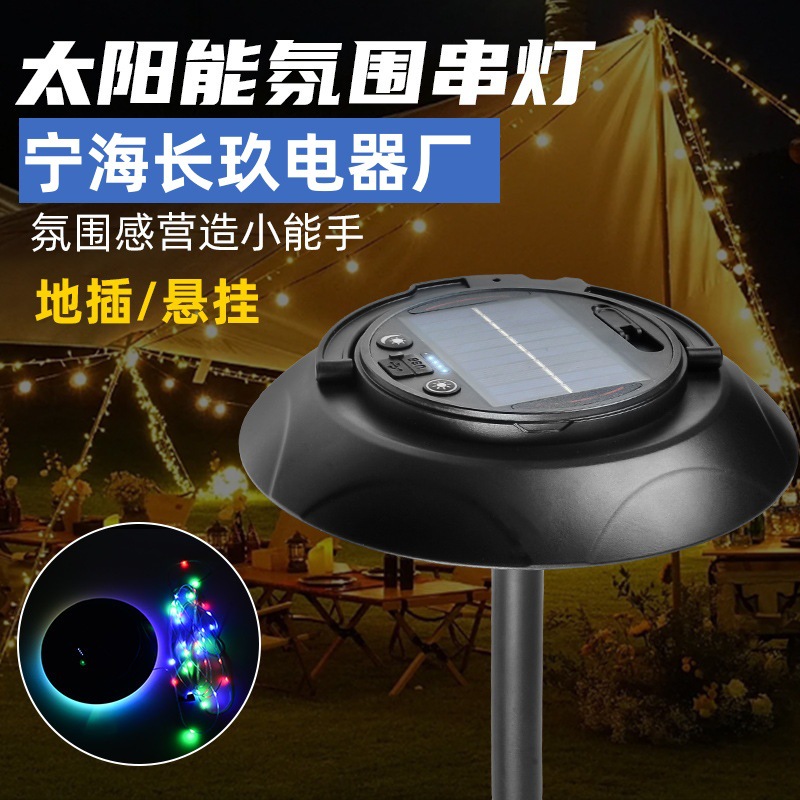 新しい国境を越えた屋外ソーラーキャンプランプ、雰囲気ライト付きカラフルなライト、長持ちする充電式テントライト、キャンプライト