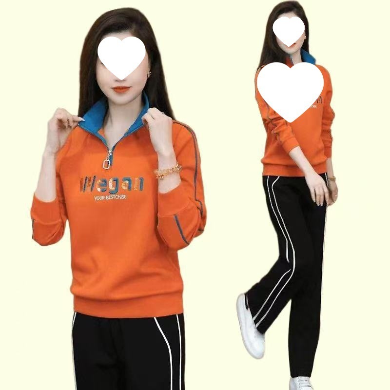 おしゃれで高級感のあるカジュアルスポーツウェアセット レディース 2025春秋新作 若見え 着痩せ効果あり 丸首スウェットパンツ ツーピースセット