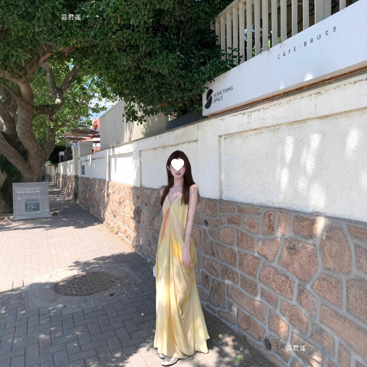 フランス三亜海辺休暇ドーパミンバックレスビーチドレス雲南タイ旅行ドレープサスペンダードレス