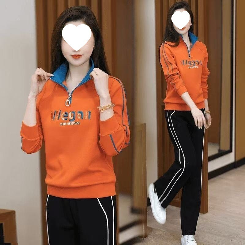 休闲运动服套装女2025春秋季新款时尚洋气减龄长袖立领卫衣两件套