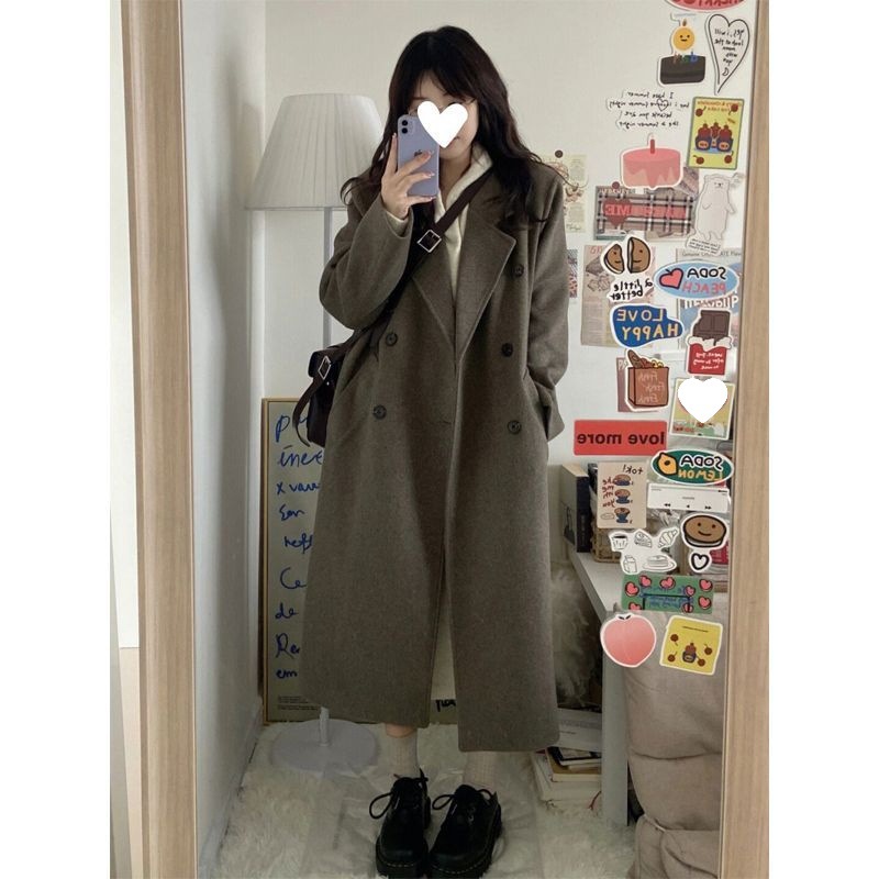 韓国風ウールコート女性のための2025秋冬新スタイル外国風年齢軽減ミッドレングス両面コート女性のためのトレンディな大きなラペル