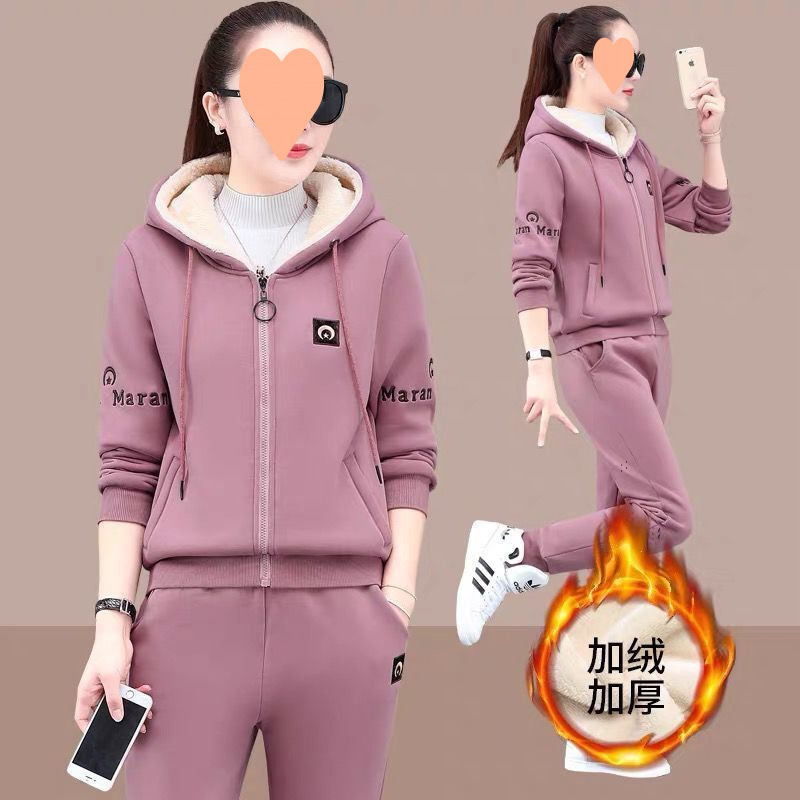 冬季加绒加厚运动套装女2025新款时尚洋气韩系减龄连帽卫衣两件套