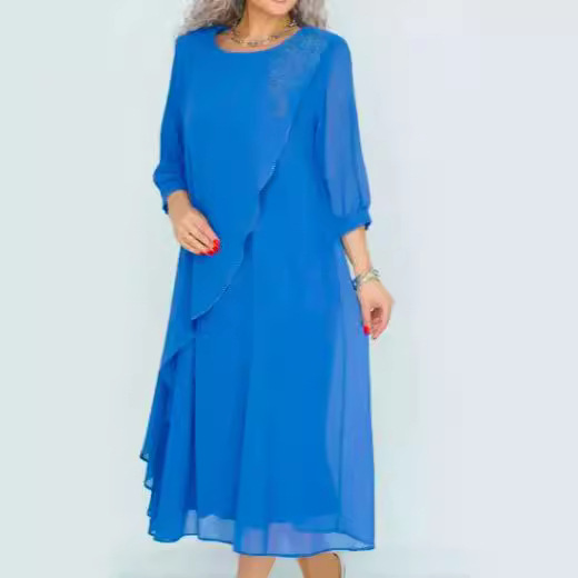 越境夏の中年のお母さんアマゾンの新型ファッションシフォンは女性の気質をつなぎ合わせてお尻のワンピースinsを包みます。