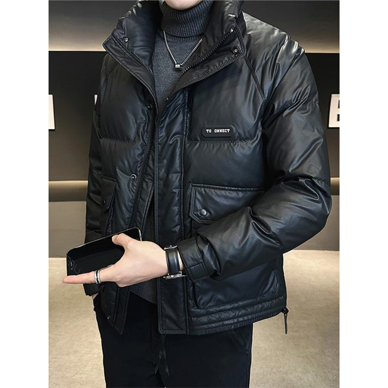 型盟高端ダウンジャケット男性冬の短いスタンドカラーpu皮上着保温白鴨ダウンジャケット男