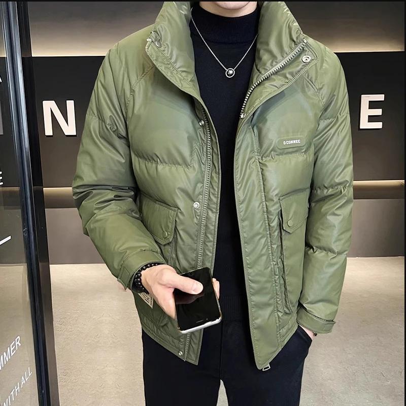 冬の新作シンプルメンズスタンドカラーダウンジャケット、韓国風スリムフィット、暖かく快適、アウトドアファッション、スタイリッシュでかっこいい。