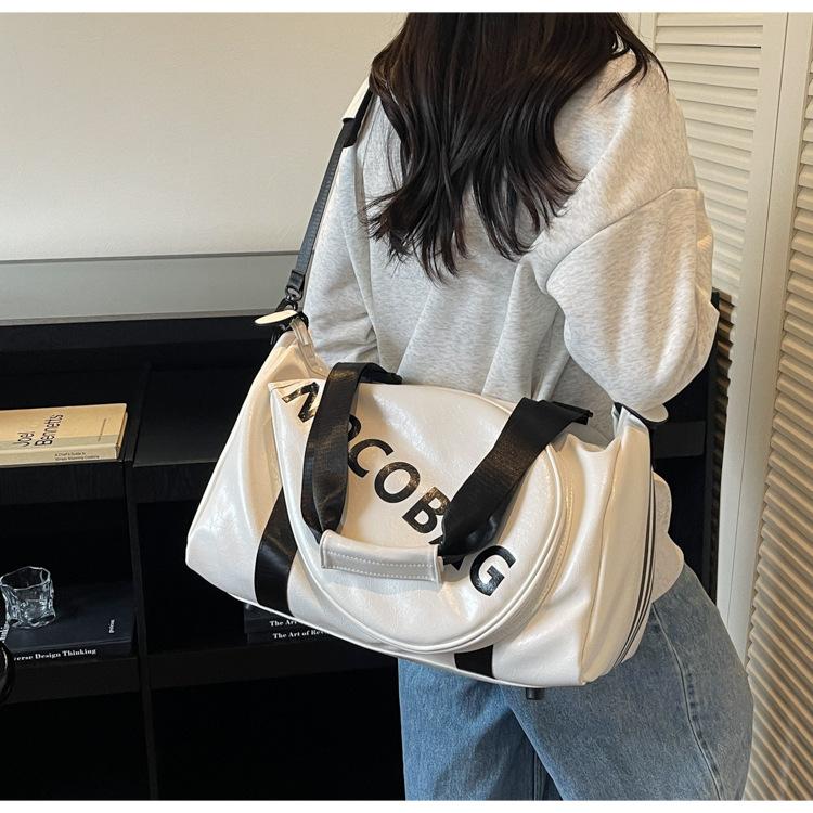 クロスボーダー韓国風革メンズ斜め掛けフィットネスバッグ大容量出張旅行荷物バッグ短距離旅行バッグ女性