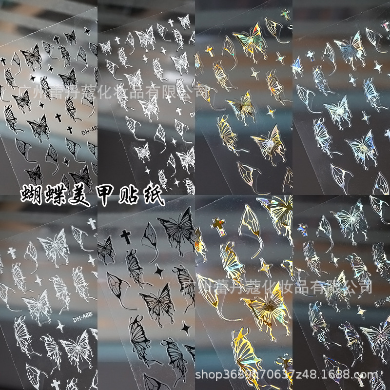 赤い金の透かし彫りの手描きの液体の蝶の爪は紙のネットの赤い金の透かし彫りの白黒の金銀のレーザーの極光のステッカーを貼ります。