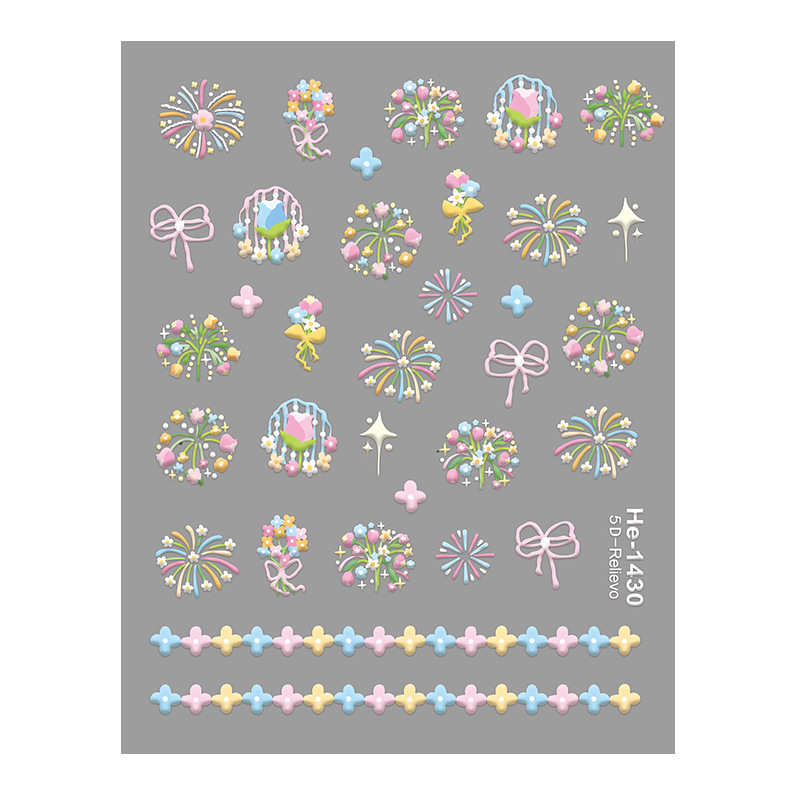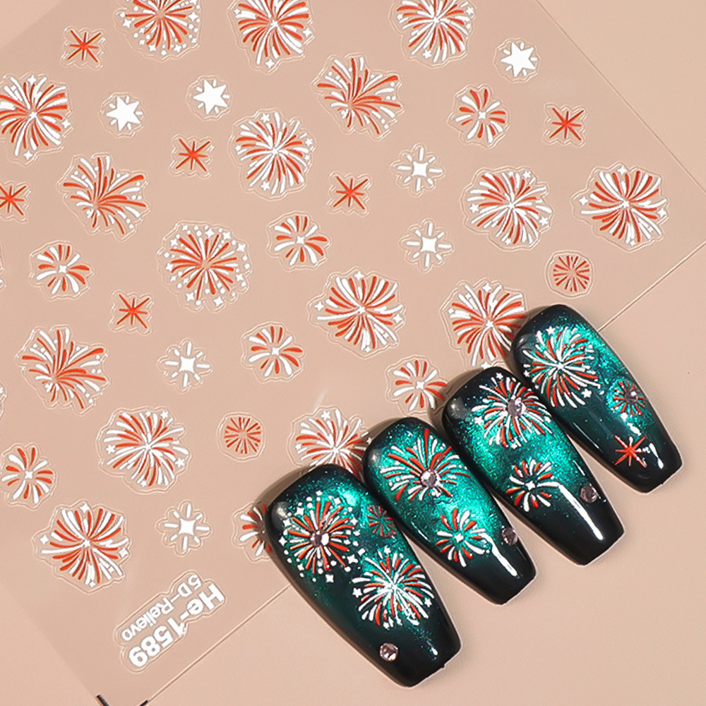 Redanco5D浮雕ins网红卡通美甲贴纸新春喜庆烟花立体指甲贴He1590