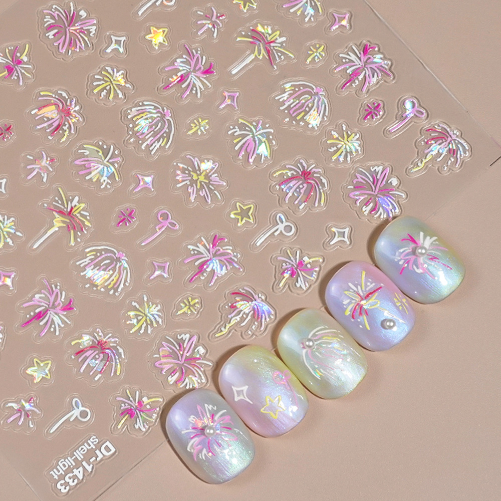 Redanco5D浮雕ins网红贝壳光美甲贴纸新年烟花立体指甲贴纸Dr1434