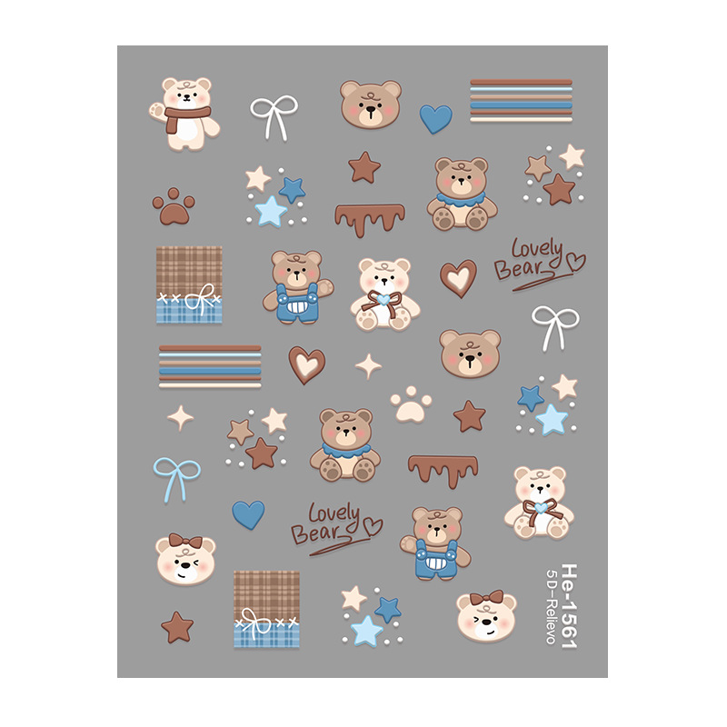 Redanco5D浮雕ins网红卡通美甲贴纸可爱小熊立体指甲贴手帐He1561