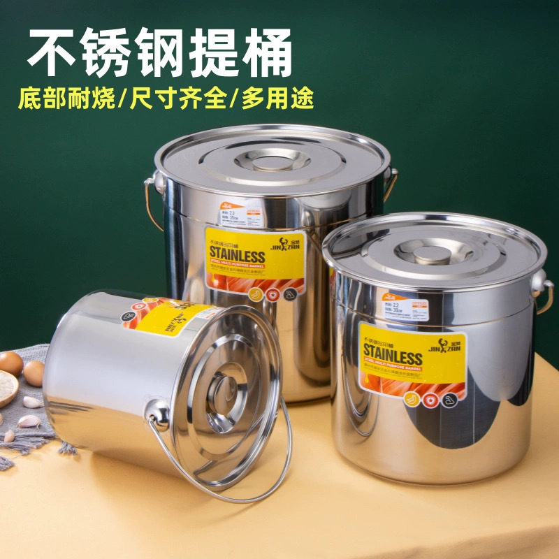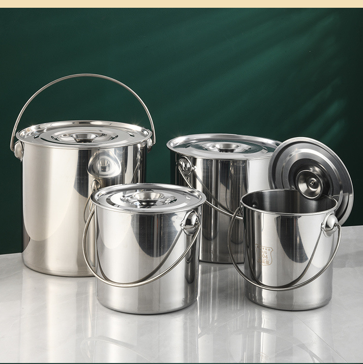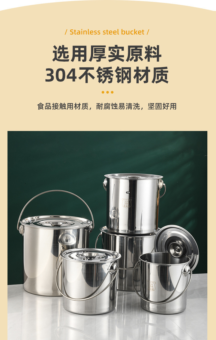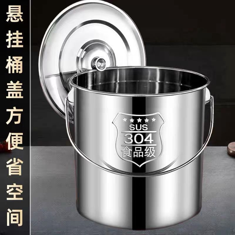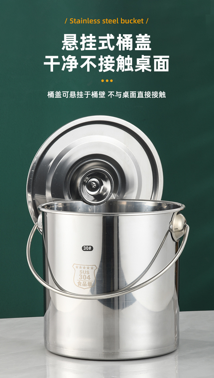 304无磁不锈钢提水桶提油桶食桶圆桶幼儿园多用桶冰桶储水桶带盖