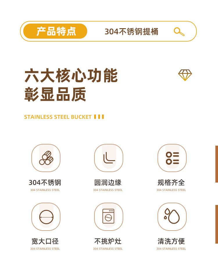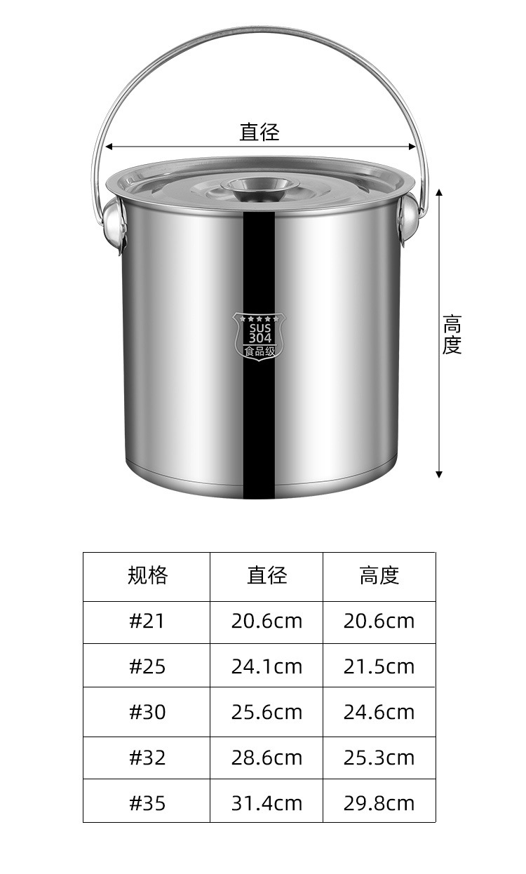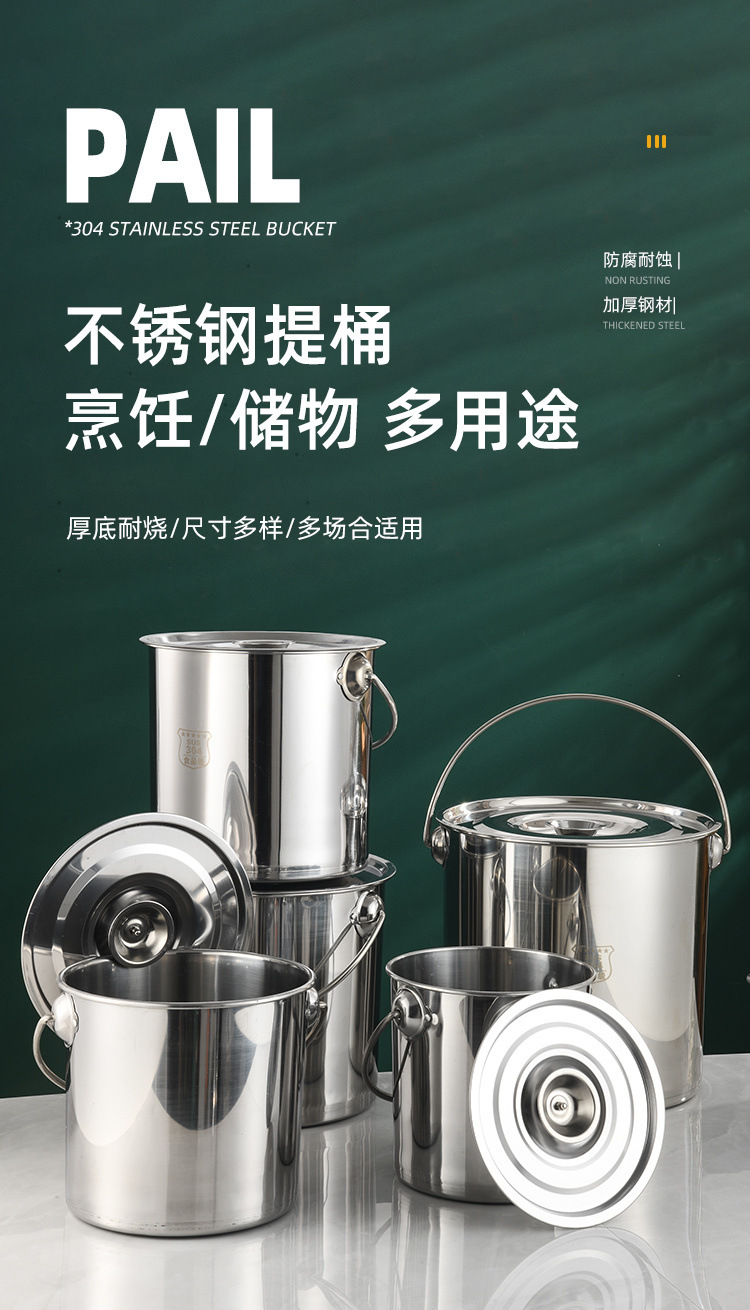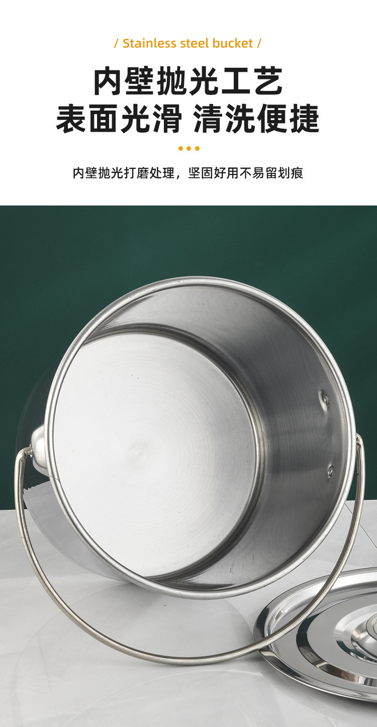 304无磁不锈钢提水桶提油桶食桶圆桶幼儿园多用桶冰桶储水桶带盖