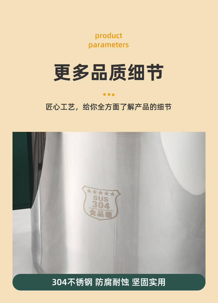 食品级304不锈钢桶圆桶手提式加厚提桶大容量带盖商用家用储水桶