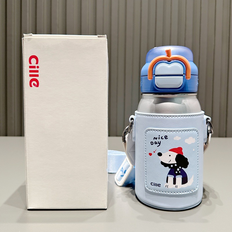 希乐儿童保温杯小学生316不锈钢水杯便携双饮吸管杯子可爱喝水壶