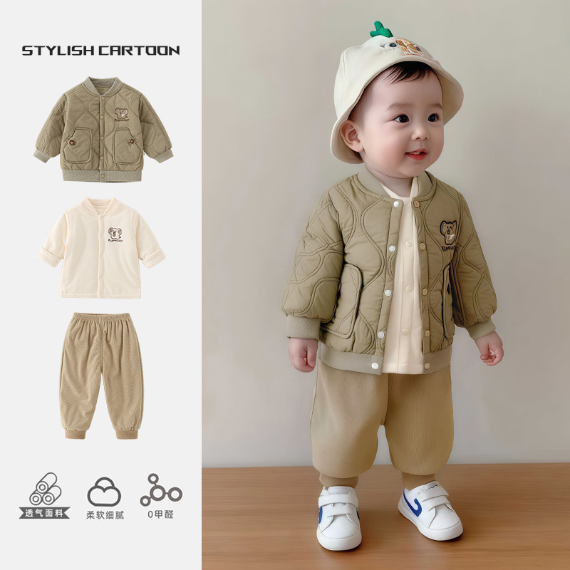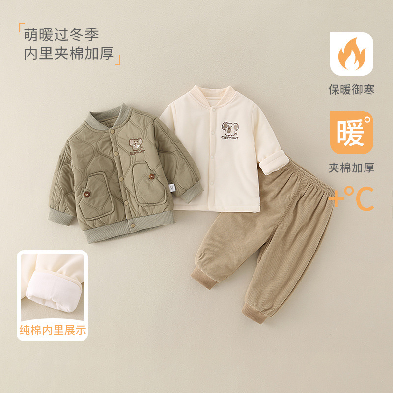 2025秋冬新款婴儿a类保暖衣服宝宝套装儿童夹棉加厚棉服男童冬季