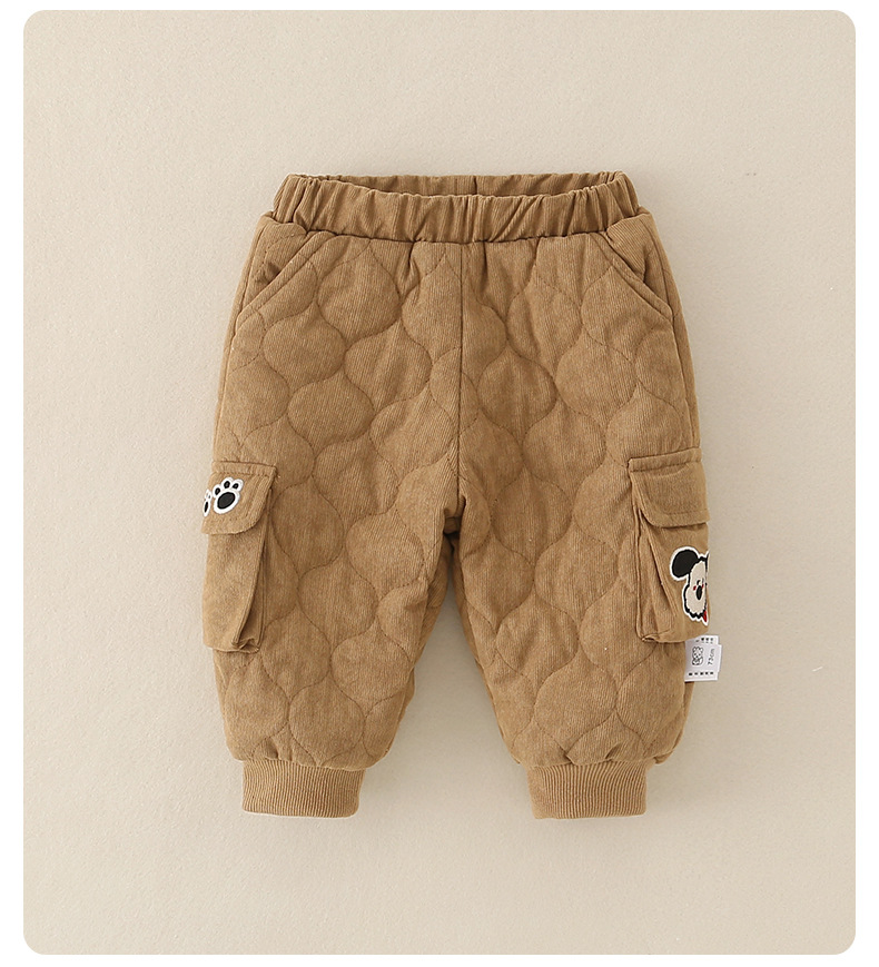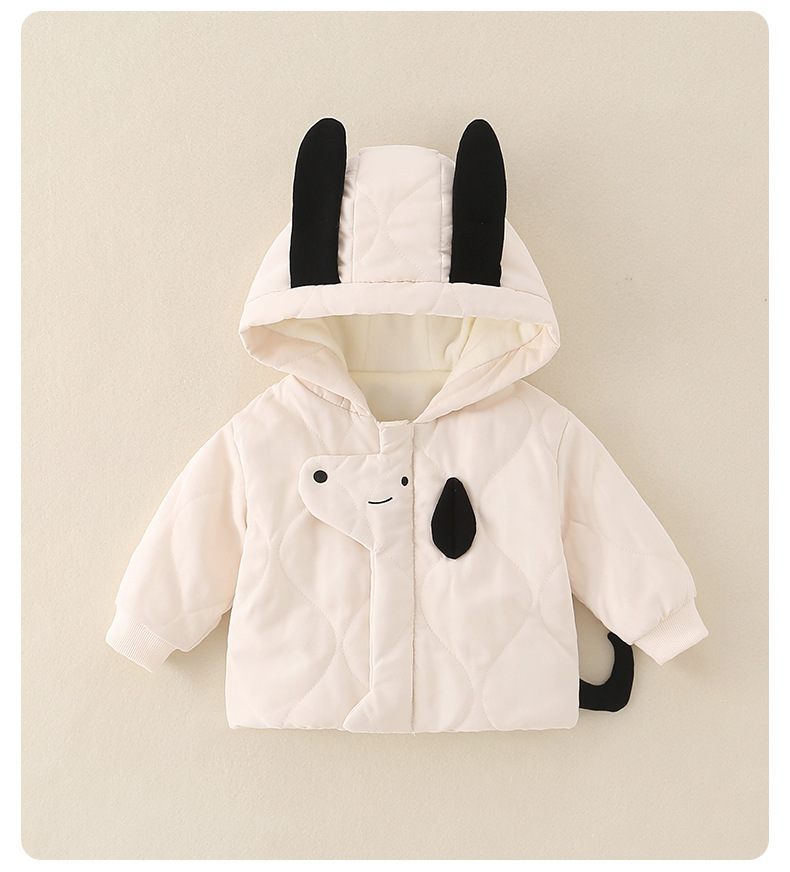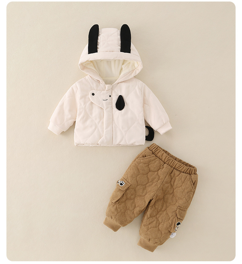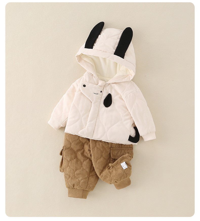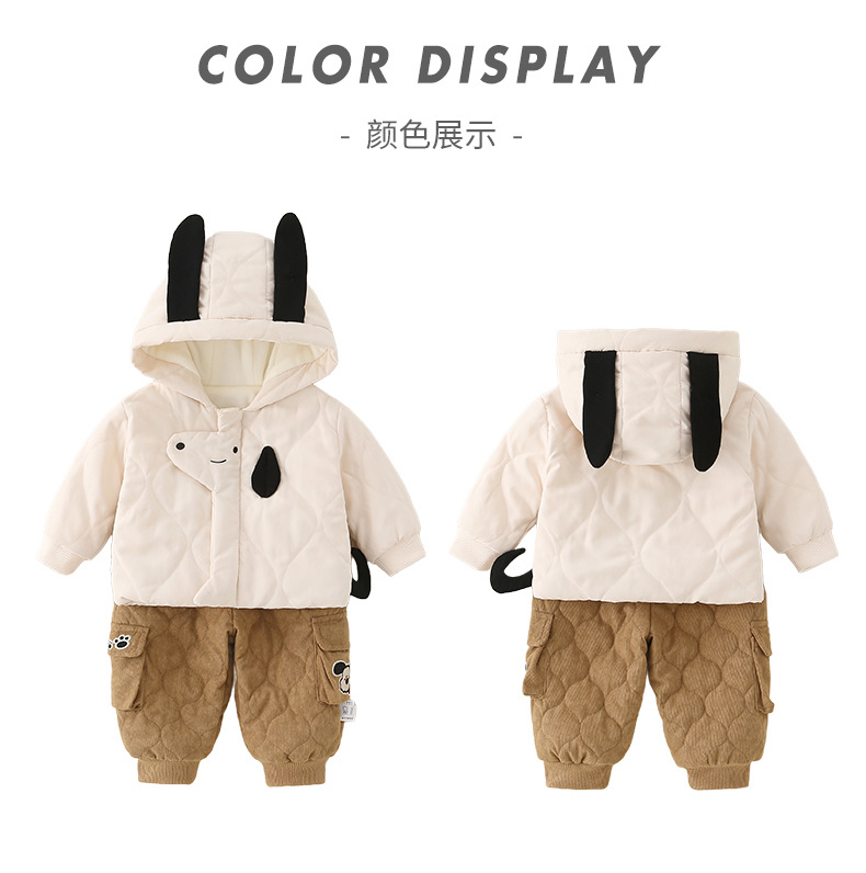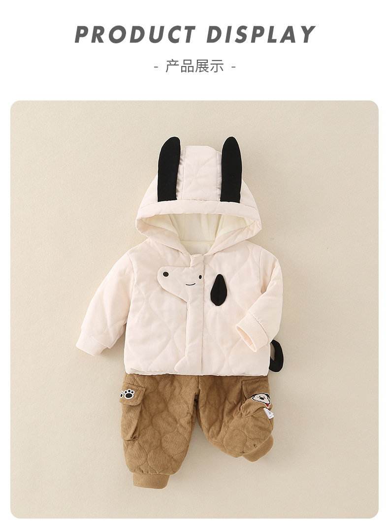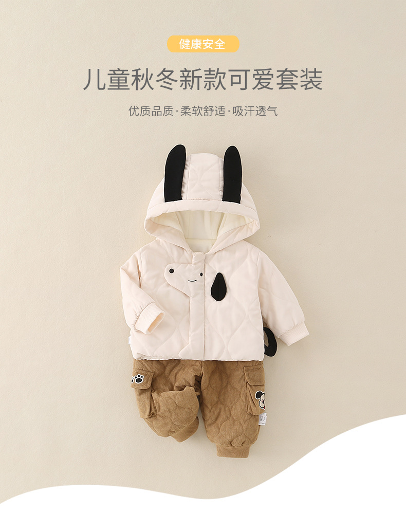 2025年冬季夹棉衣服两件套一岁男宝宝卡通保暖薄棉棉服分体套装