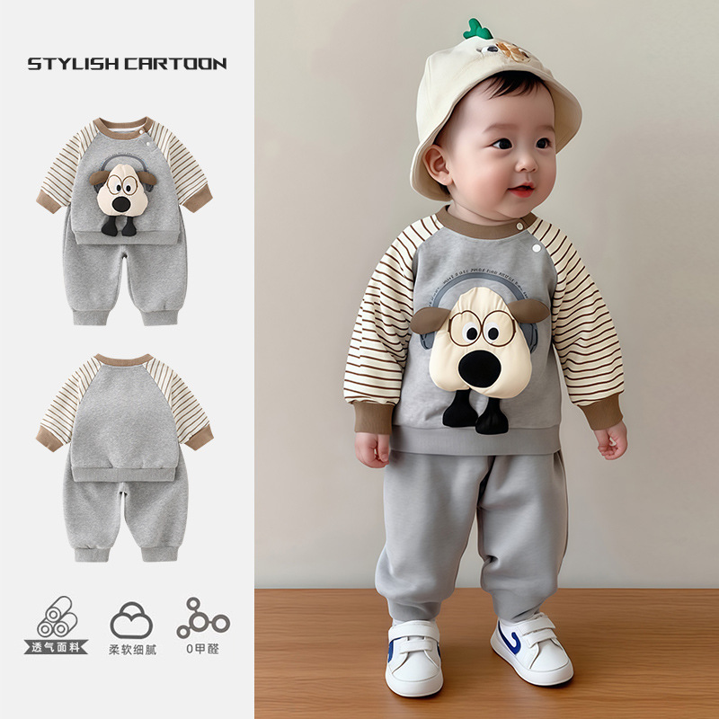 婴幼儿秋冬套装2025新款a类可爱卡通韩版男宝宝可薄棉两件套套装
