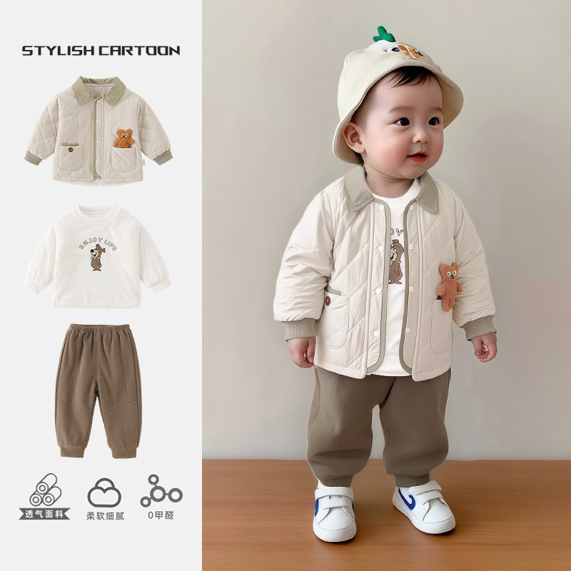 婴幼儿秋冬三件套2025年新款a类可爱薄棉外套男宝宝休闲内搭套装