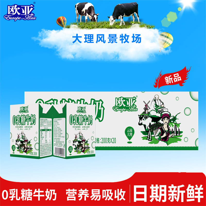 【日期新鲜】欧亚高原全脂0乳糖牛奶200g*20盒/箱大理乳制品