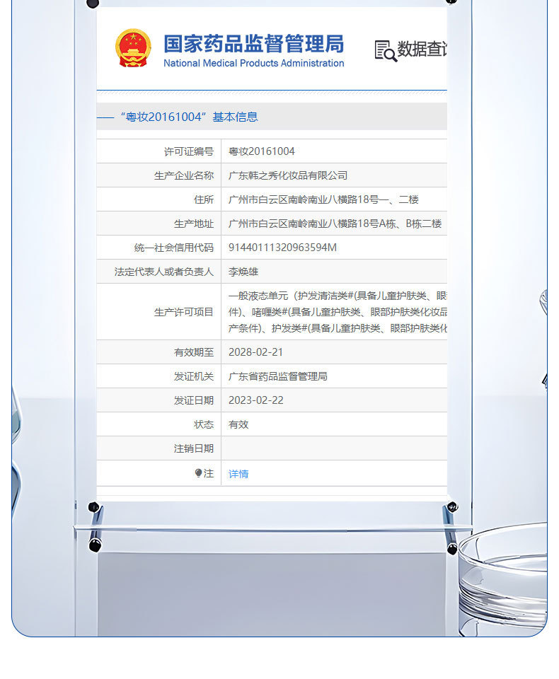 生产许可证号 粤妆20161004