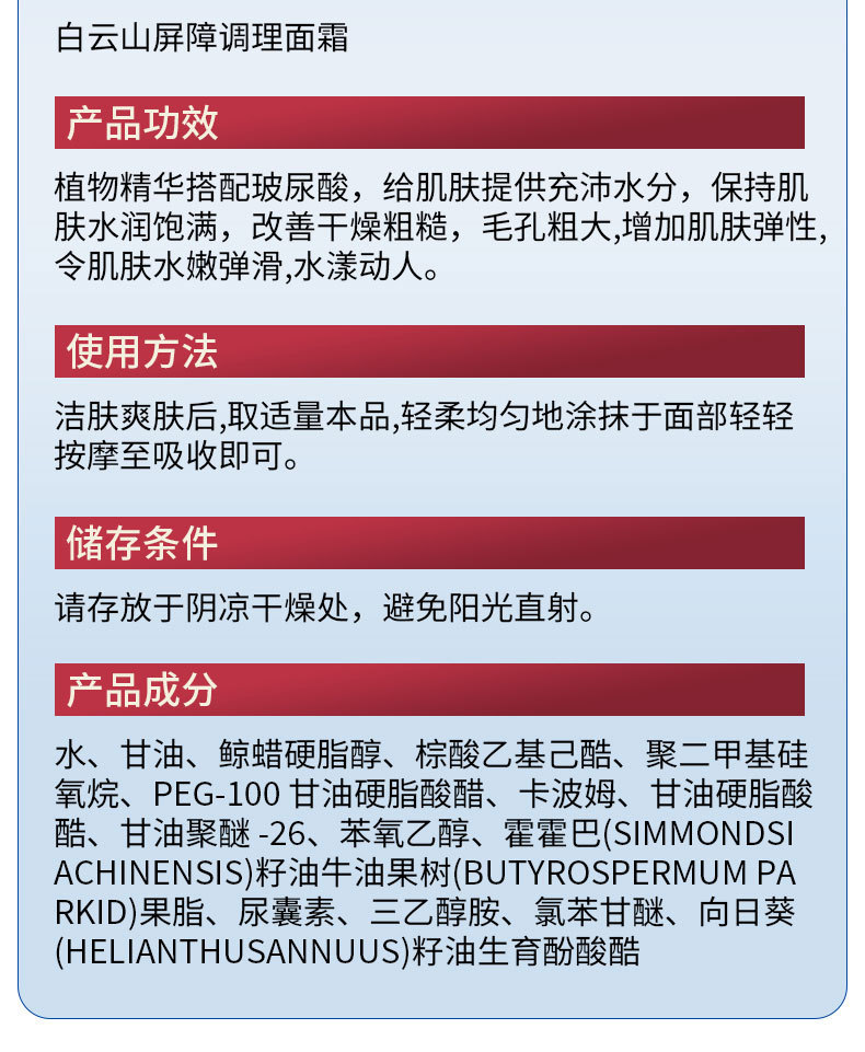 产品名称 白云山屏障调理面霜50g