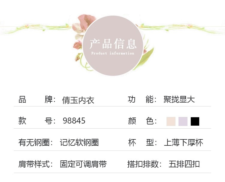 功能 定型,聚拢,透气,上托,塑身,调整型,舒适,侧收,收副乳