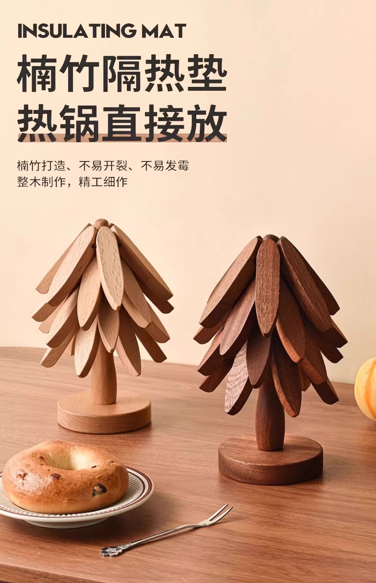 一棵树隔热垫家用实木防烫砂锅耐高温桌垫餐垫高级感创意摆件跨境
