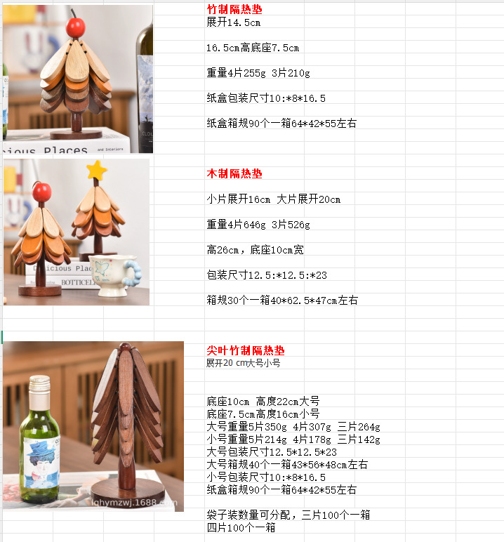クロスボーダー木製クリエイティブツリー断熱マットクリスマスツリー火傷防止と高温耐性テーブルマット家庭用コースターサンナン竹