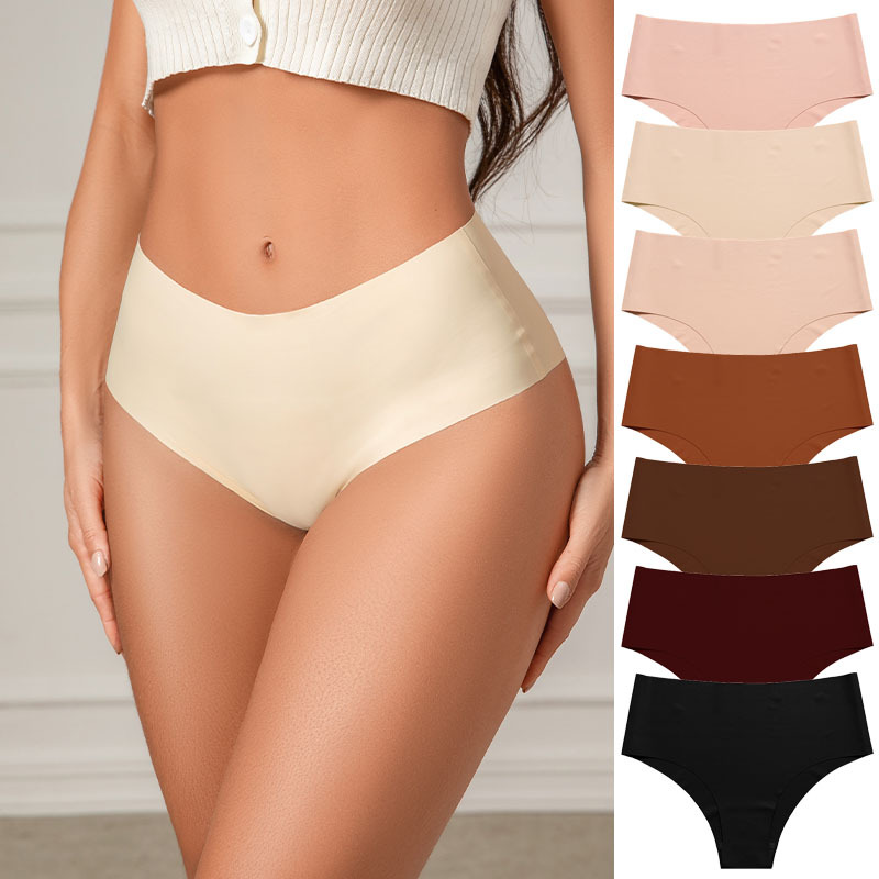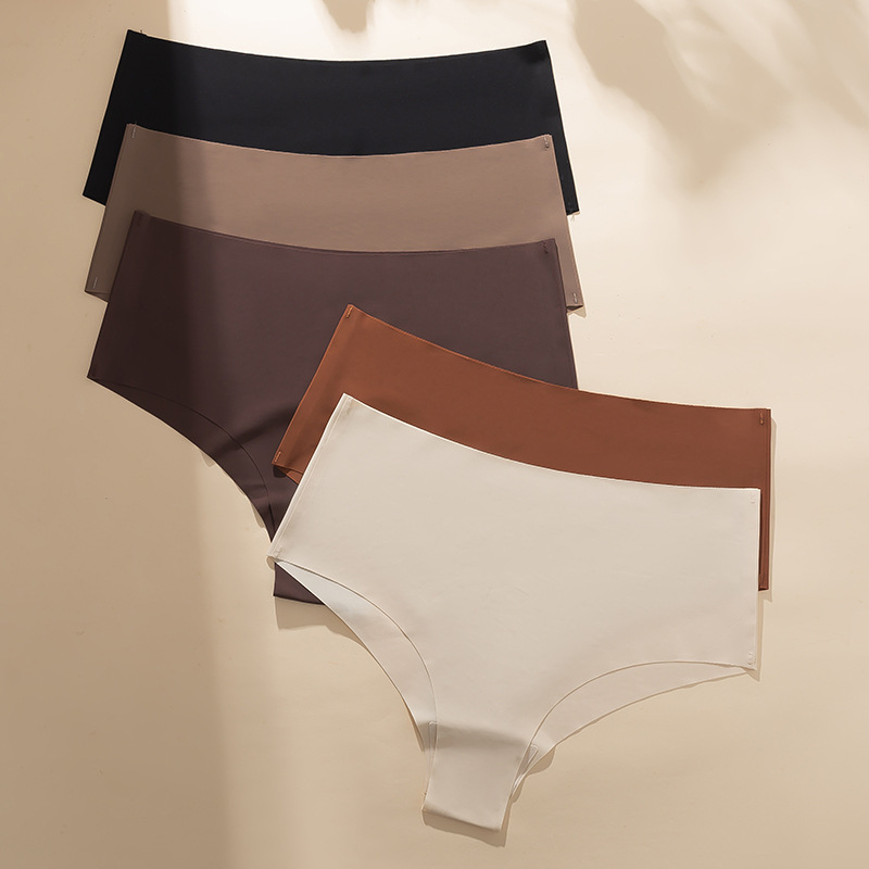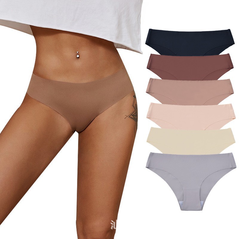 跨境欧美中高腰大码冰丝无痕女士内裤a类透气运动低腰裸感三角裤
