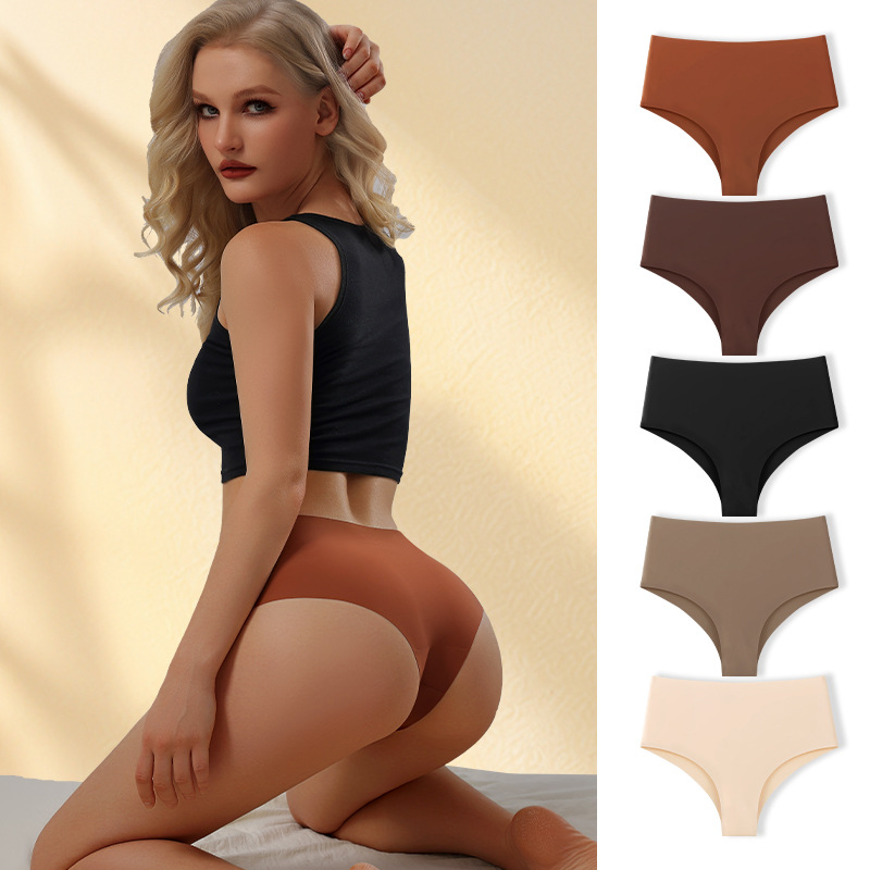 亚马逊欧美无痕中高腰女士三角裤瑜伽透气一片式收腹提臀冰丝内裤