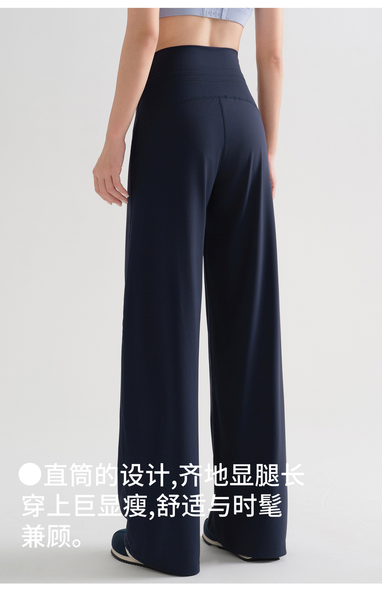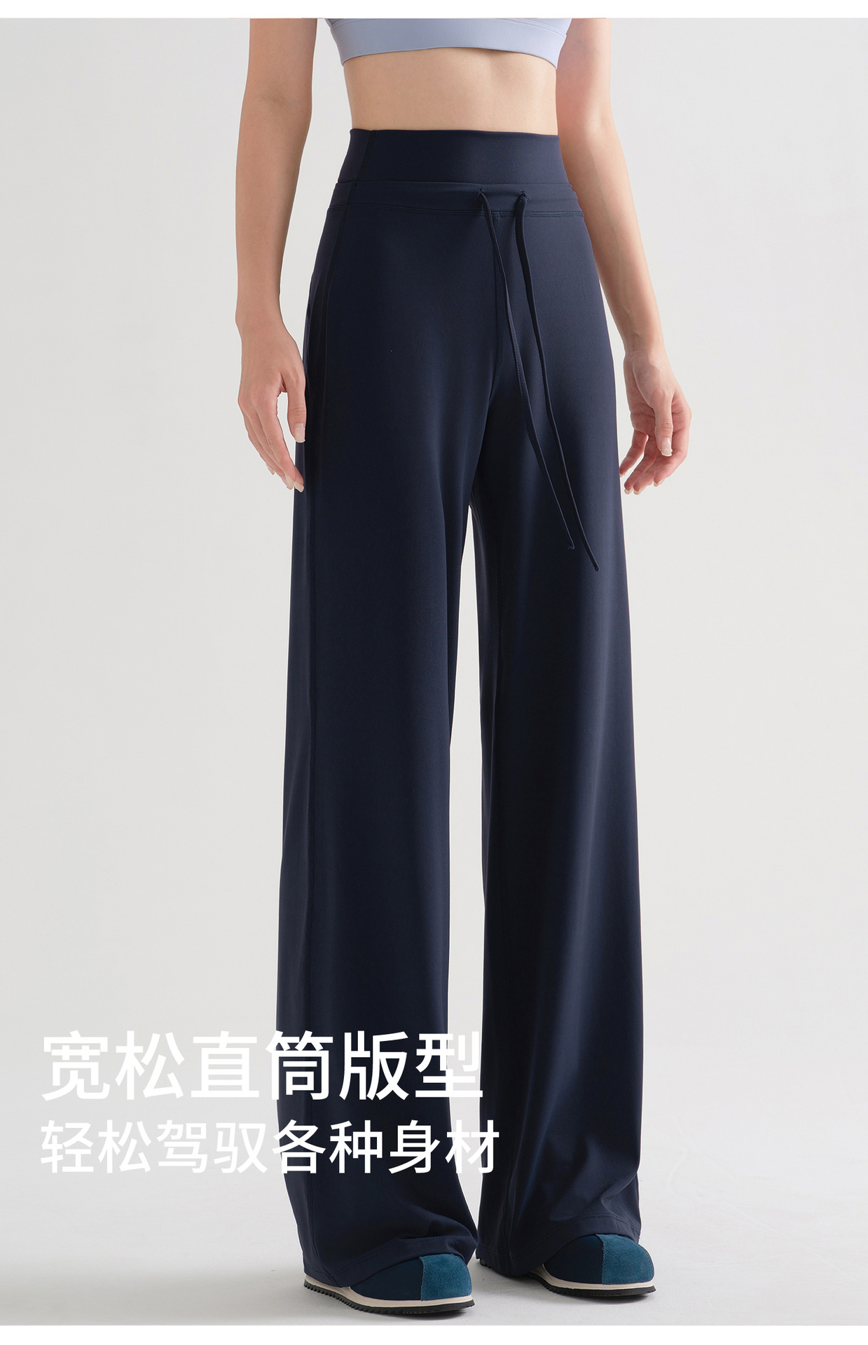 藏青色宽松瑜伽裤女2025新款高个子高腰直筒跑步训练舞蹈健身长裤