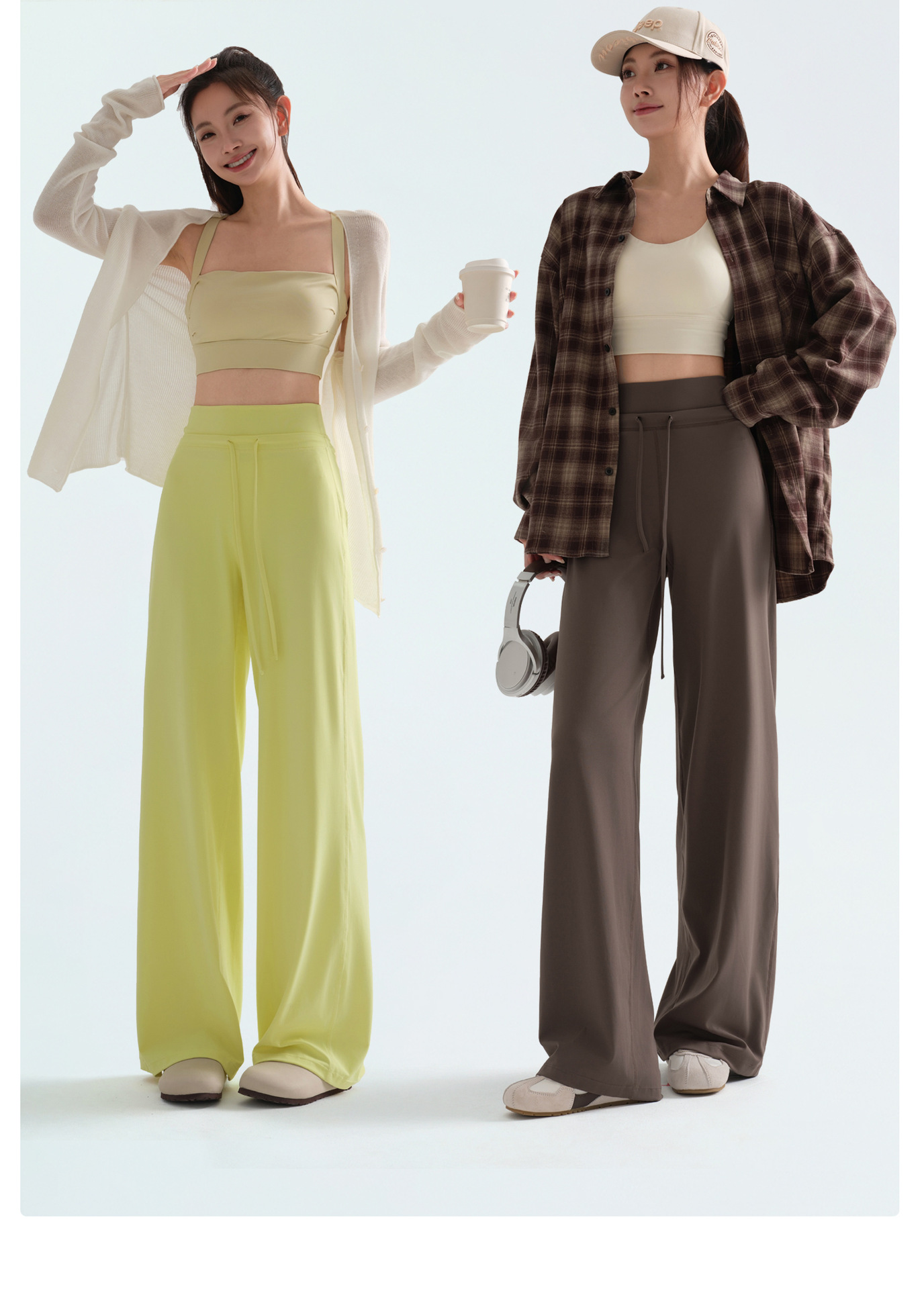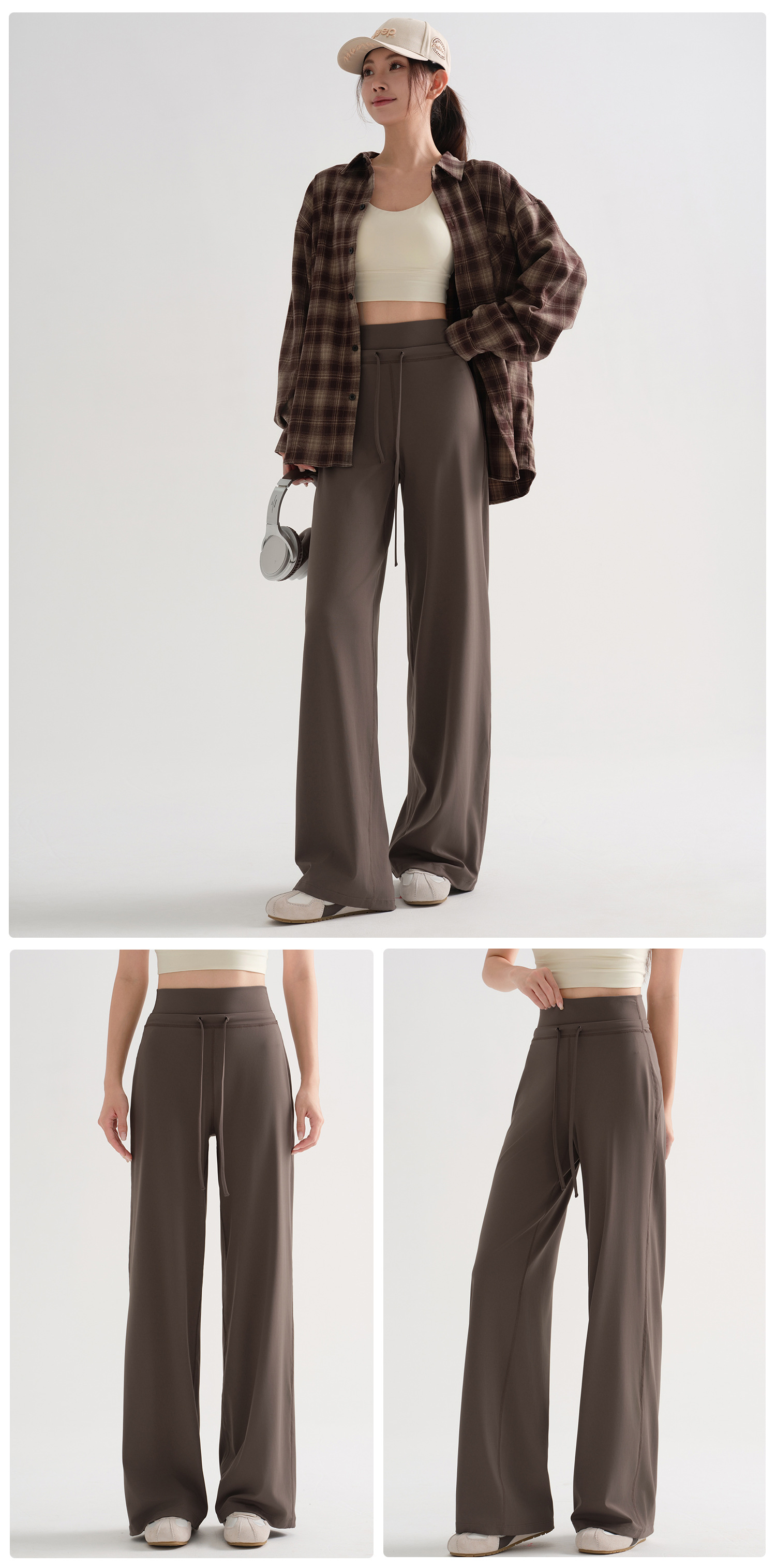 咖色宽松直筒运动瑜伽裤女秋季2025新款高腰健身舞蹈训练健身长裤