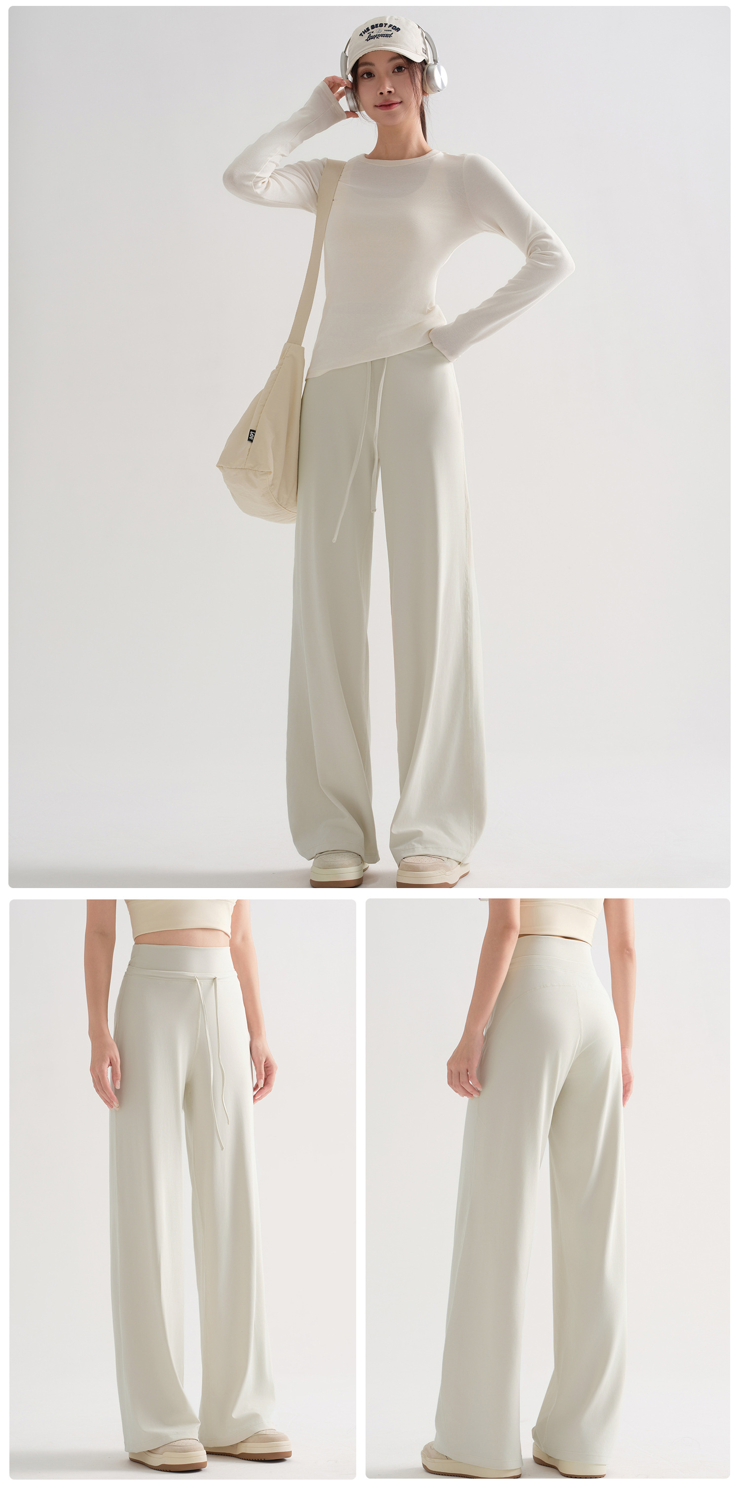 白色宽松直筒运动瑜伽裤女秋季2025新款高腰阔腿普拉提加长健身裤