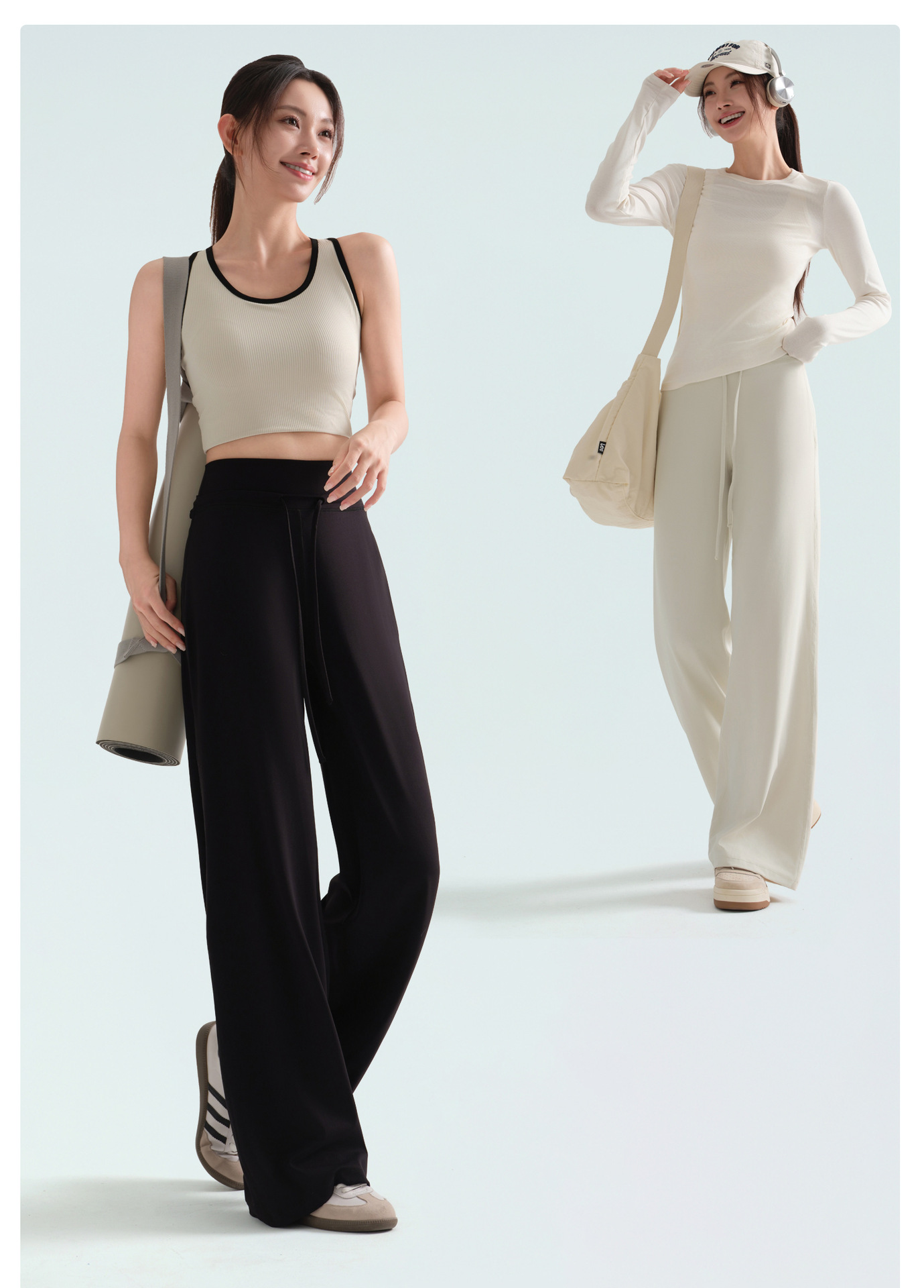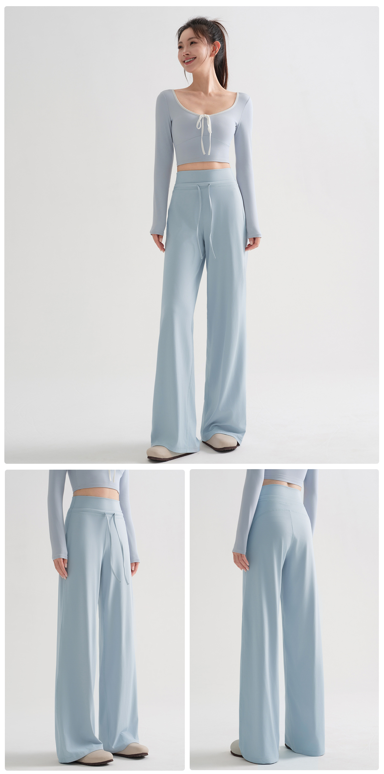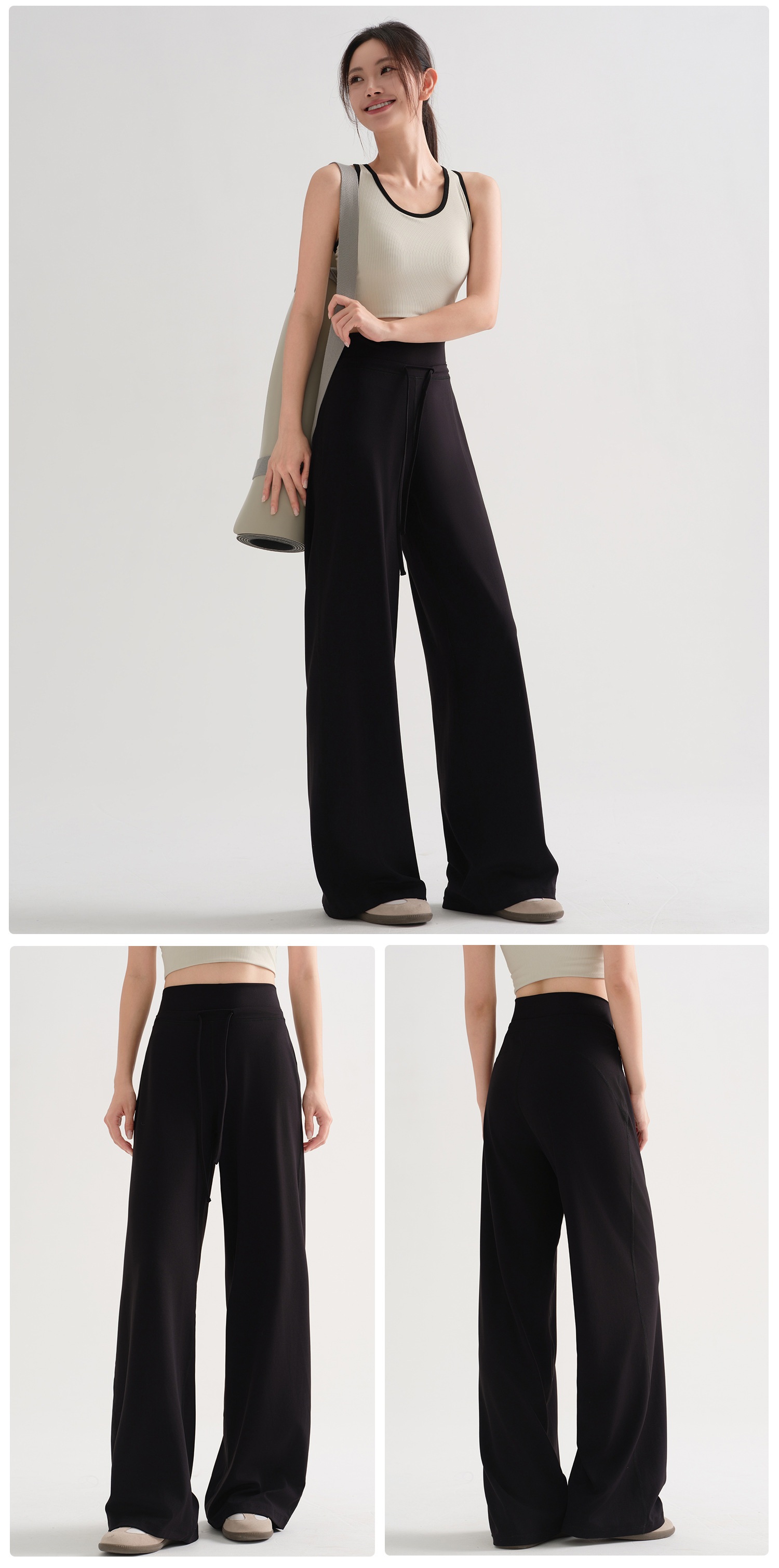 175高个子宽松瑜伽裤外穿秋新款抽绳垂感阔腿裤高腰运动直筒裤女