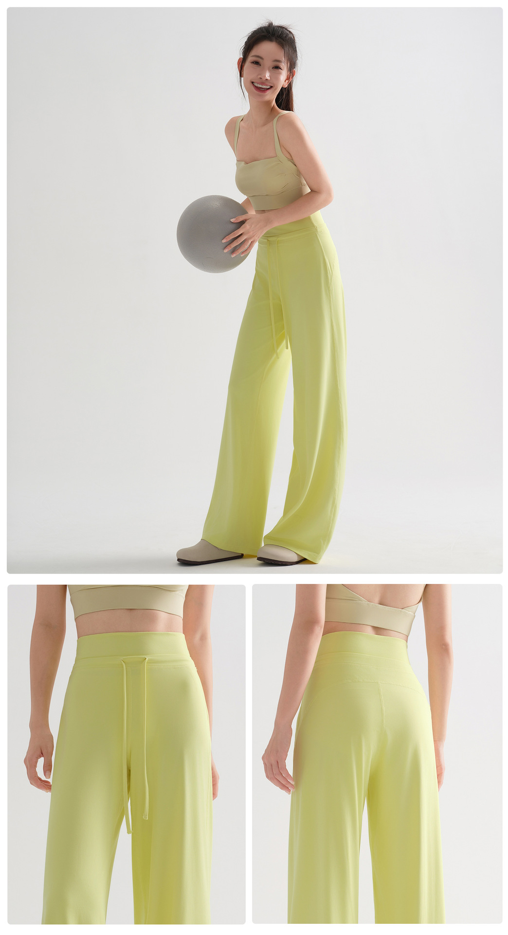 ゆったりストレートレッグスポーツパンツ、スリム、ハイウエスト、ランニングトレーニング、夏通気性巾着ワイドレッグヨガパンツ、薄手、新品