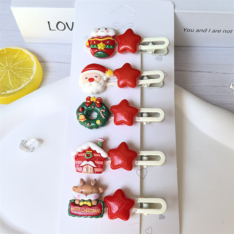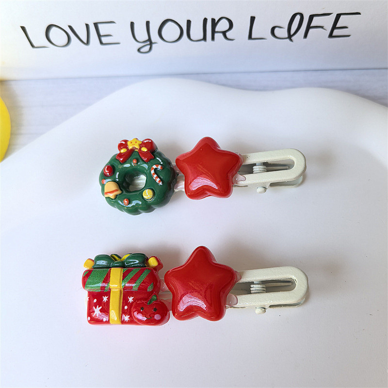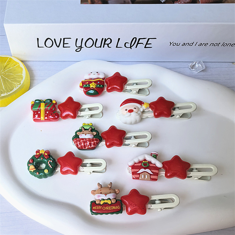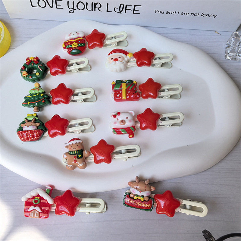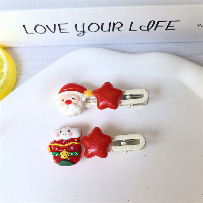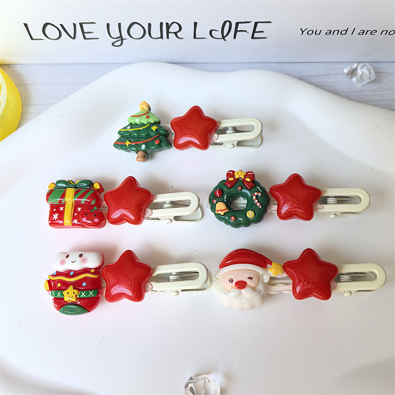跨境热销圣诞节发夹圣诞树老人花环头饰儿童可爱刘海碎发卡波浪夹