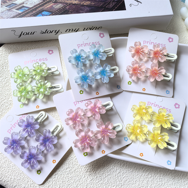 小清新なキラキラキャンディー色の桜のヘアピン子供の氷透花の可愛い髪飾りの女の子の髪飾り前髪の縁に挟まれています。
