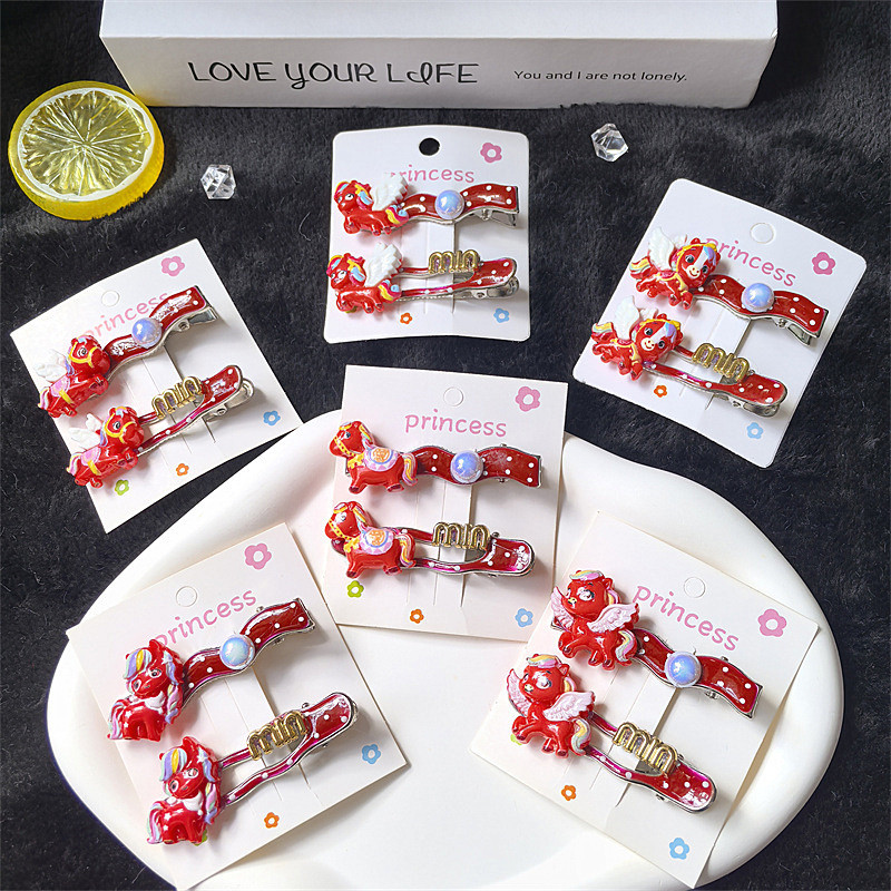 新年款波点红色小马发夹女生精致发饰高颜值森系百搭发卡过年头饰