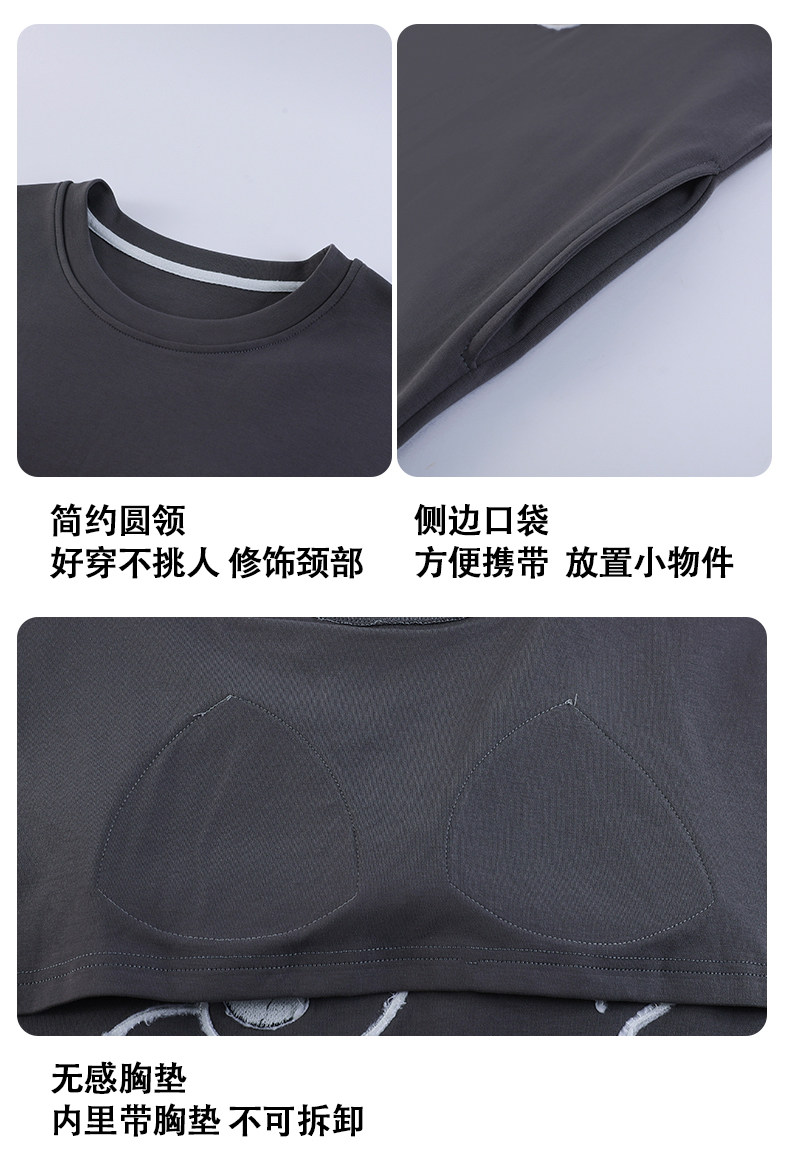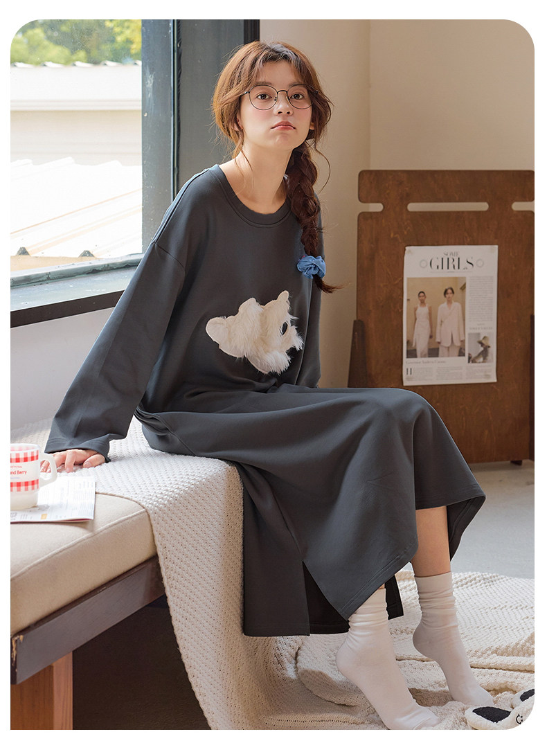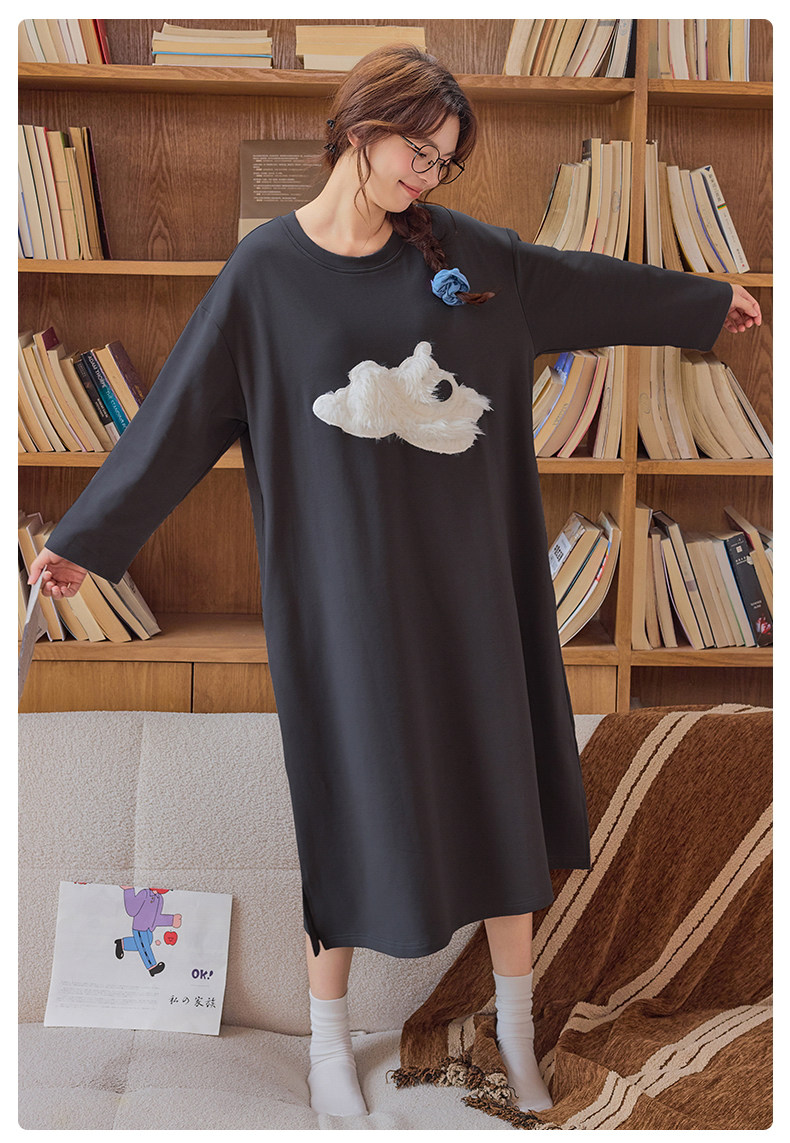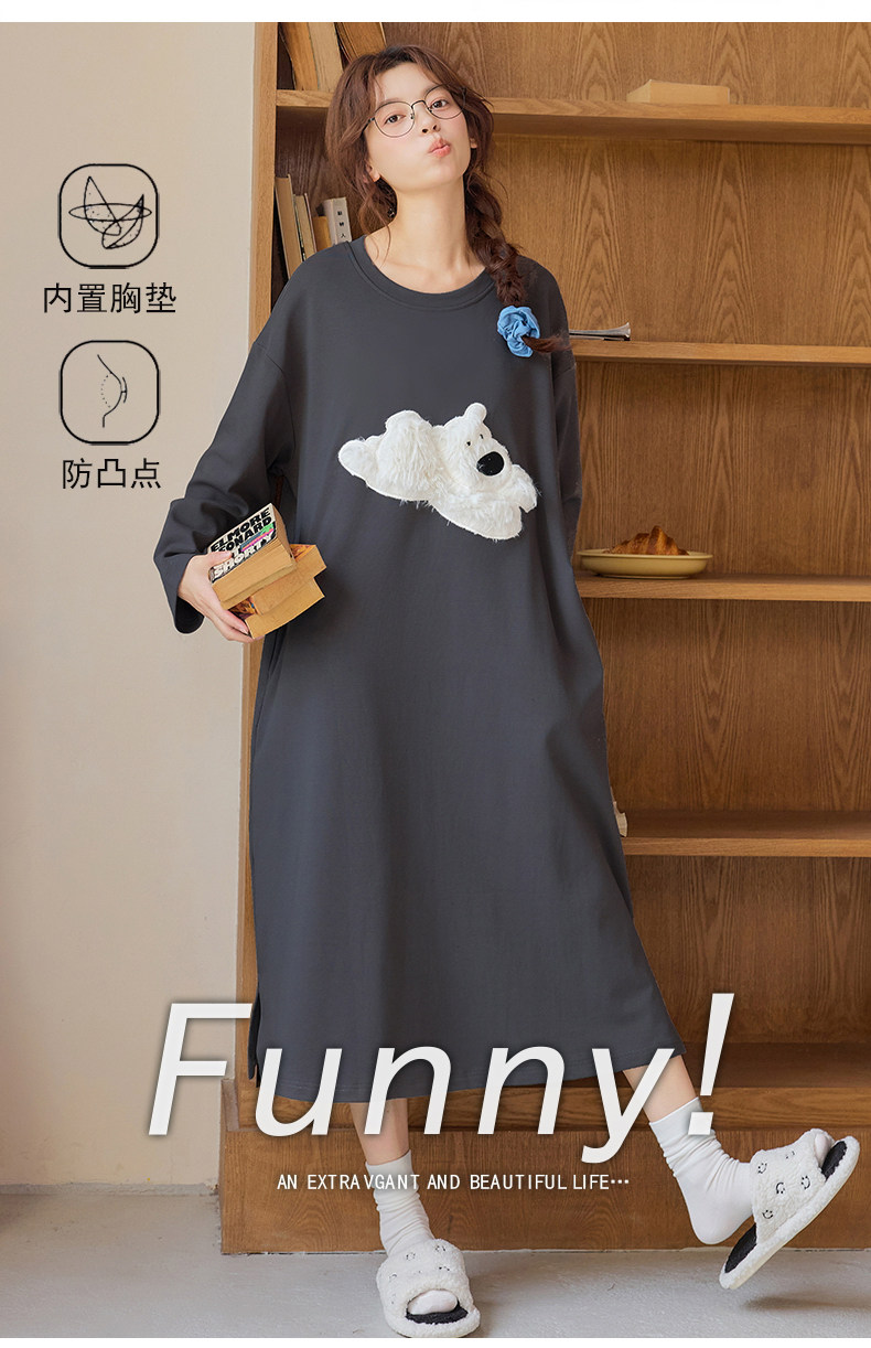 由果春秋冬季长袖纯棉睡裙女加胸垫2025年新款简约卡通家居服睡衣