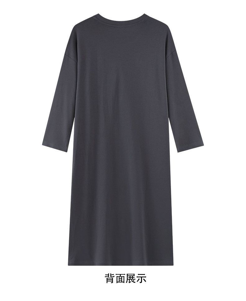 莫代尔睡裙女彩棉螺纹V领套头长袖连衣裙宽松舒适春秋纯色家居服