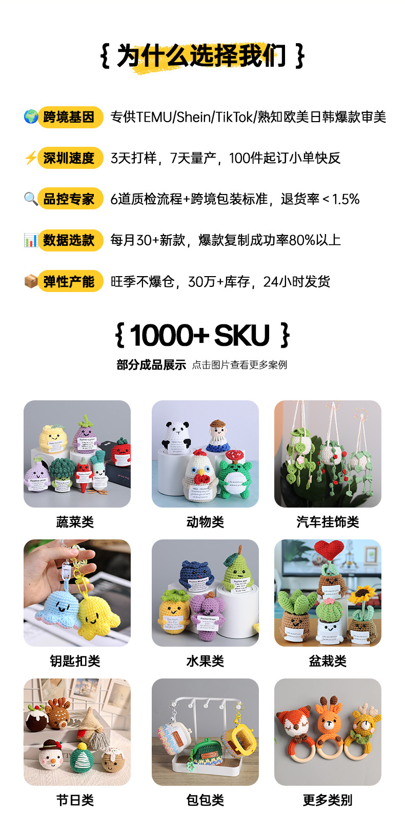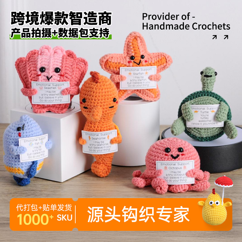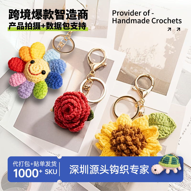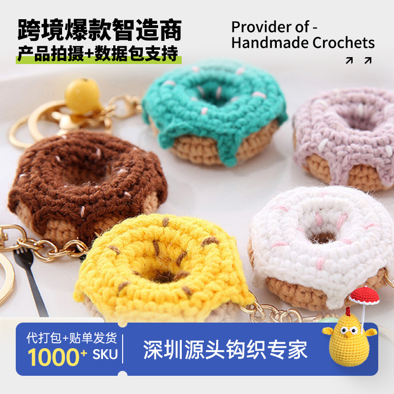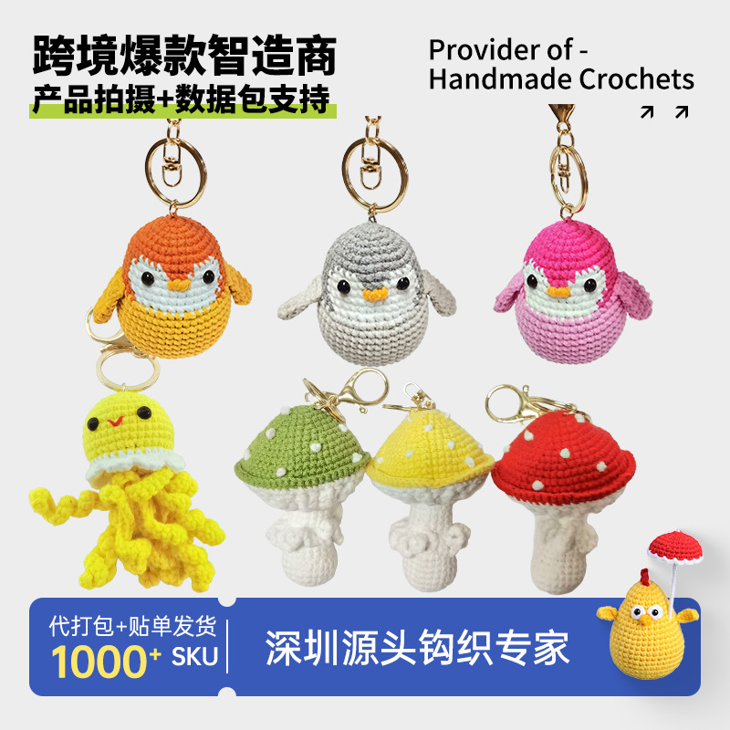 跨境专供手工钩织钥匙扣挂饰成品编织动物植物源头厂货礼品货源