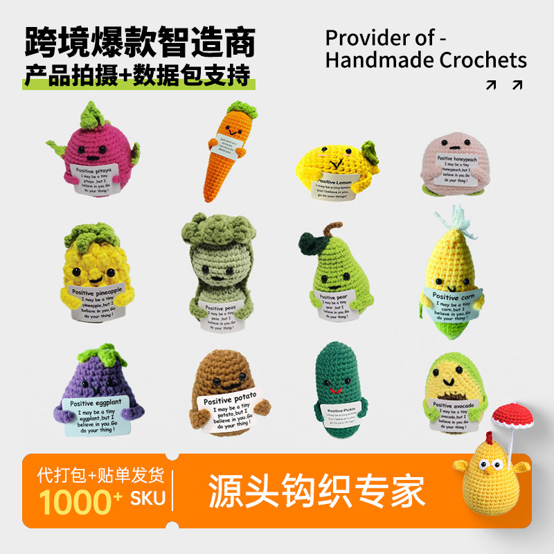 手工钩织玩偶成品柠檬黄瓜搞怪表情胡萝卜钩织摆件钩织装饰批发