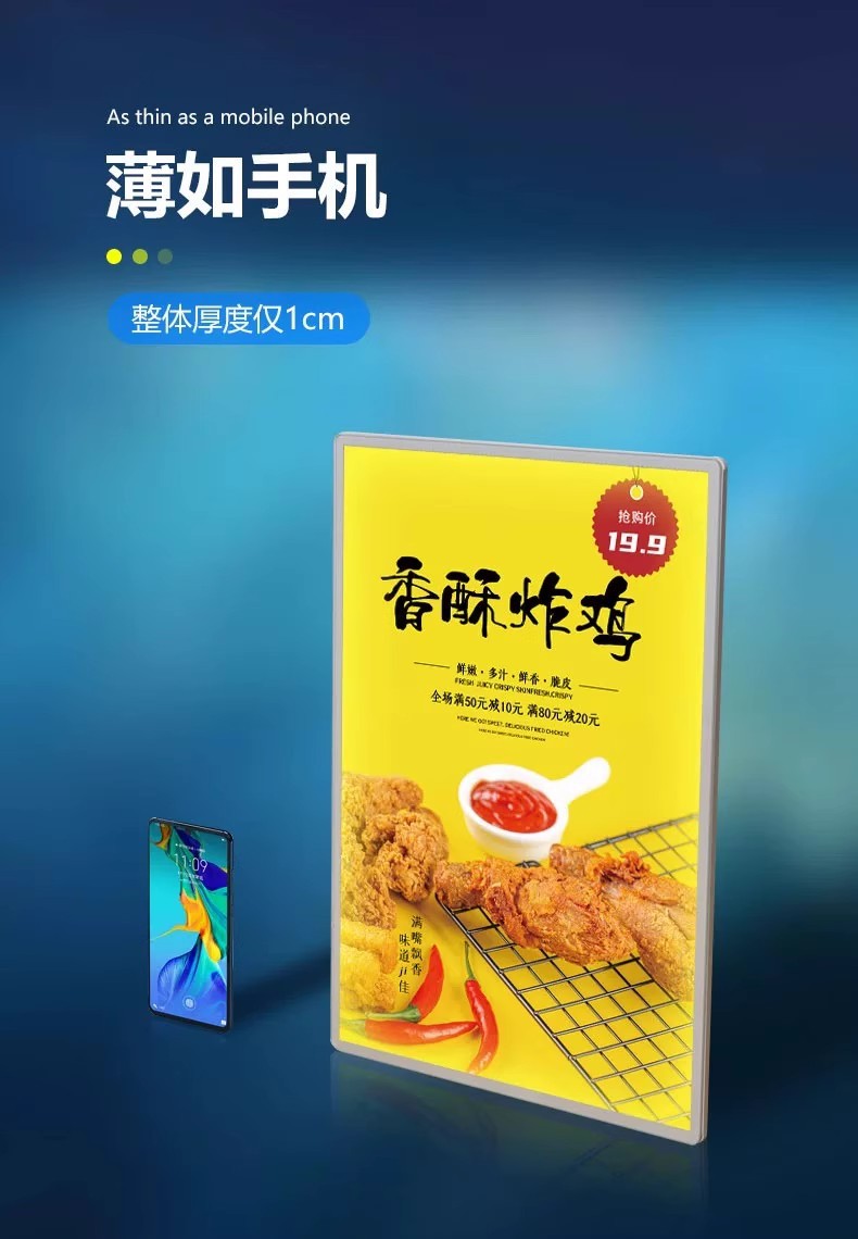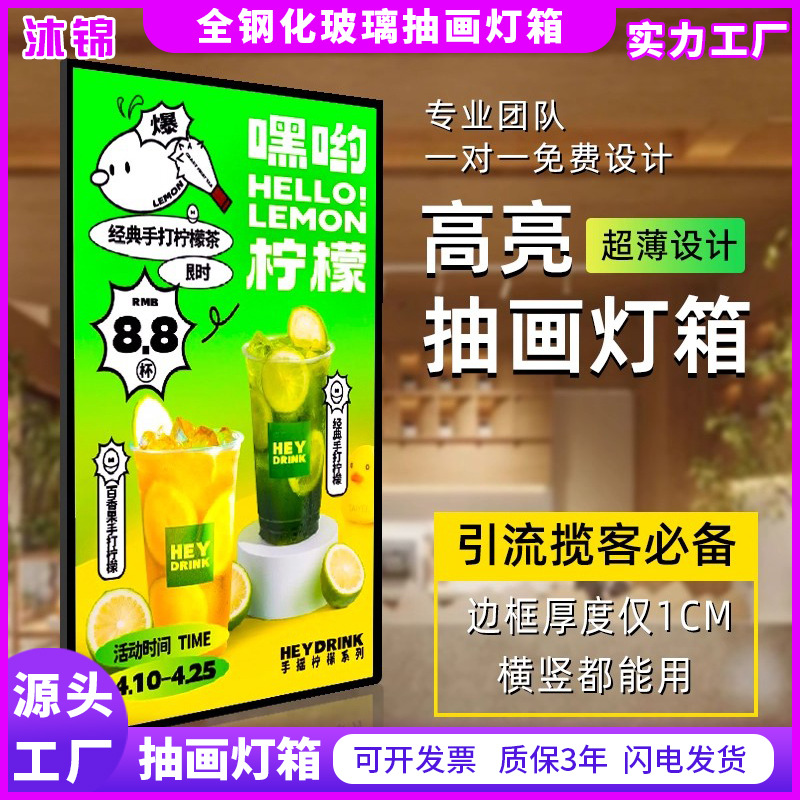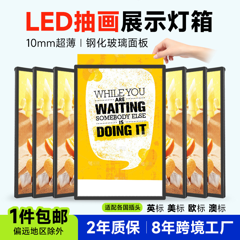 高超清抽画立式超薄广告灯箱壁挂发光海报广告牌挂墙式led展示架