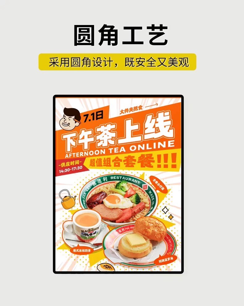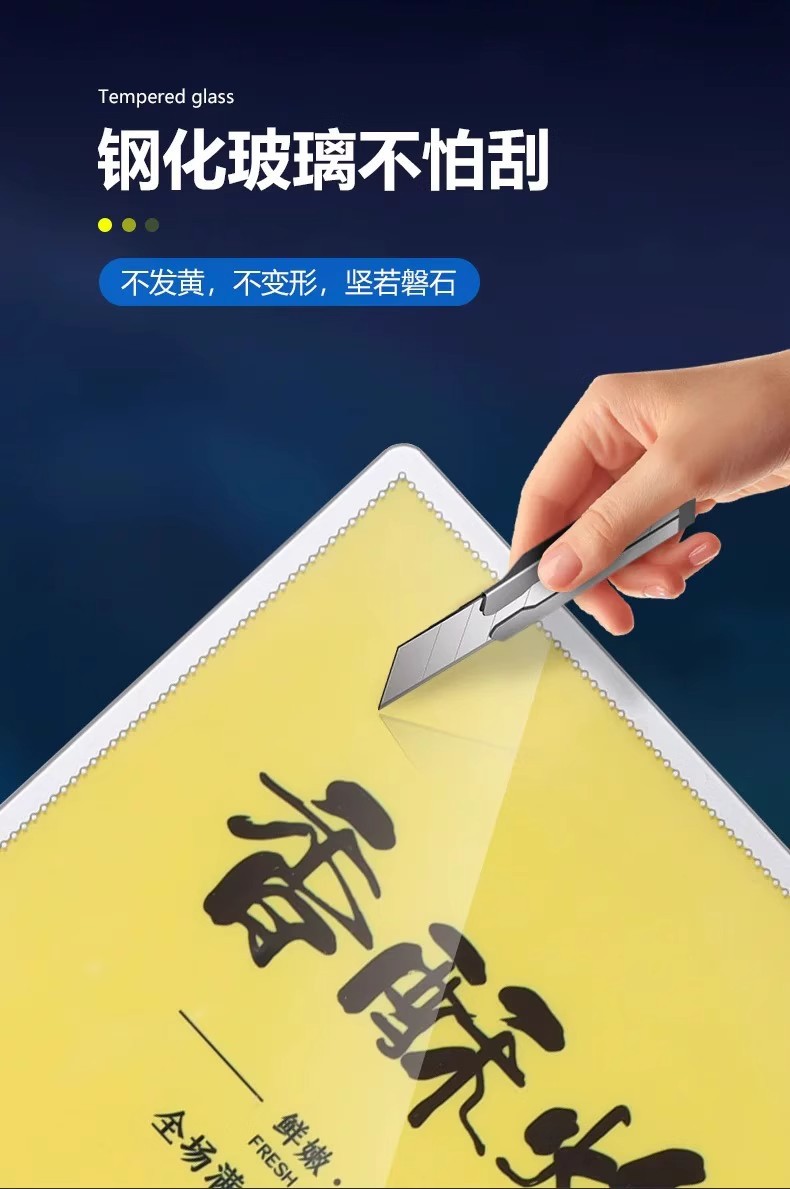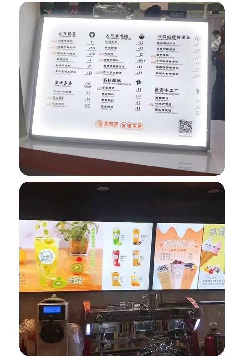 超薄型壁掛けライトボックス、丸角強化ガラス広告板、飲食店メニューLED広告発光ライトボックス