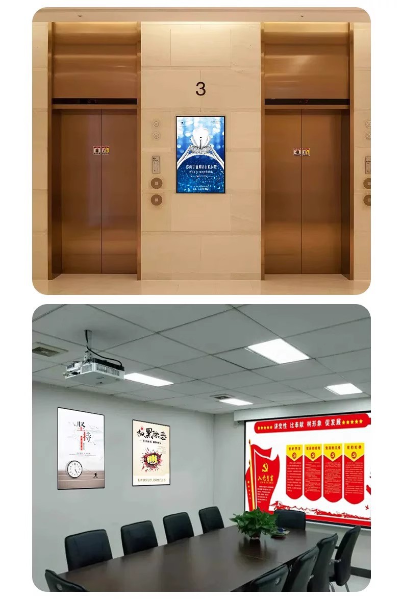 ライトボックス強化ガラスパネル超薄型LED発光高精細透明壁掛けエレベーターメニューイラスト広告