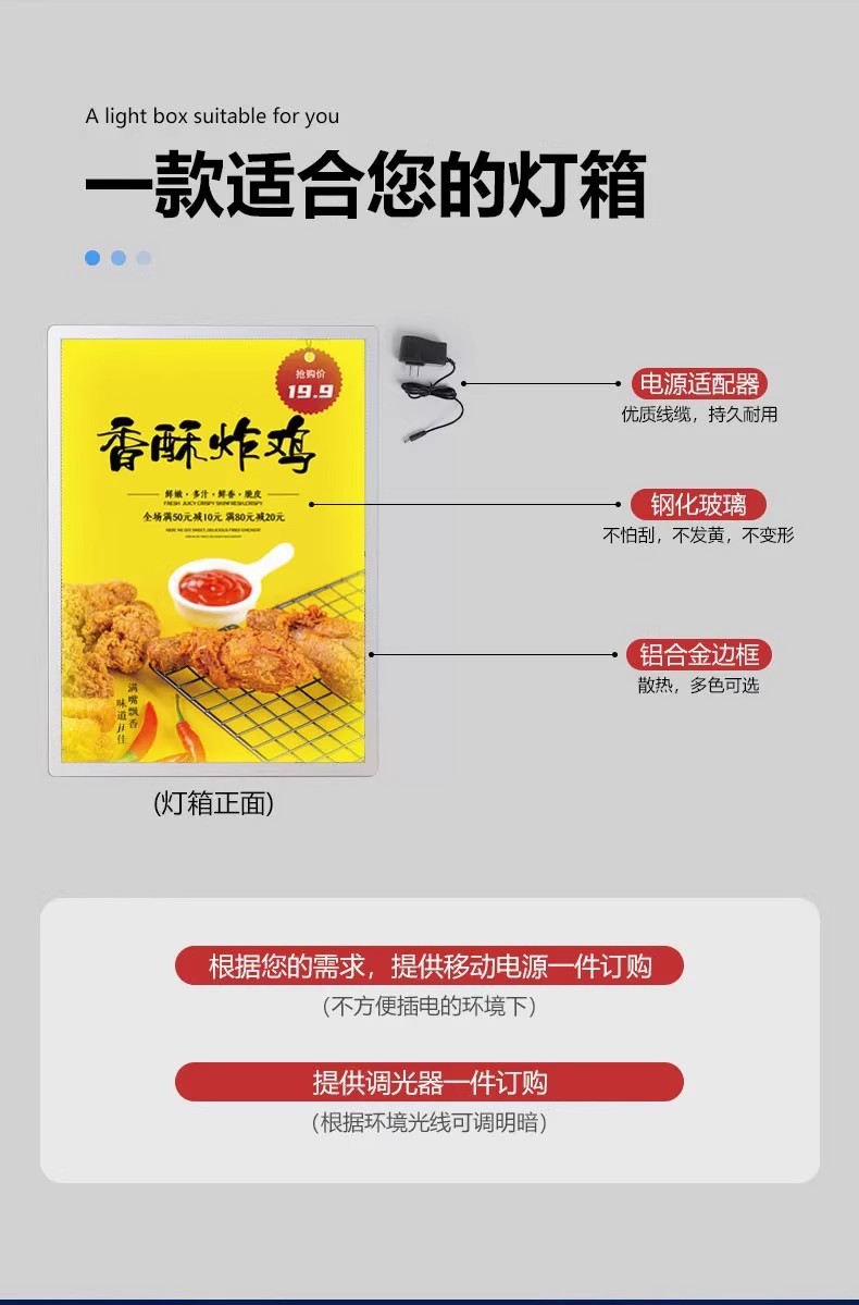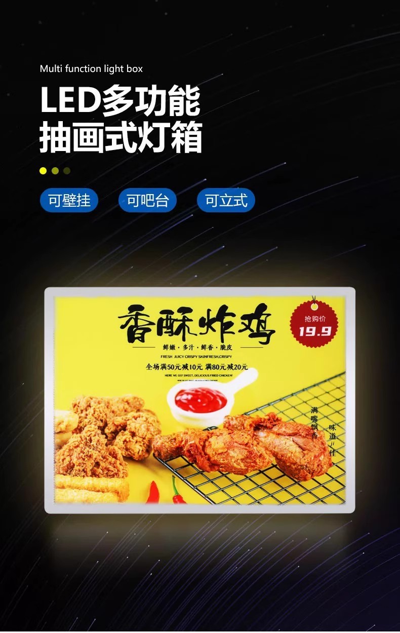 立式抽画灯箱广告牌壁挂广告门头招牌充电摆台点餐led发光展示架